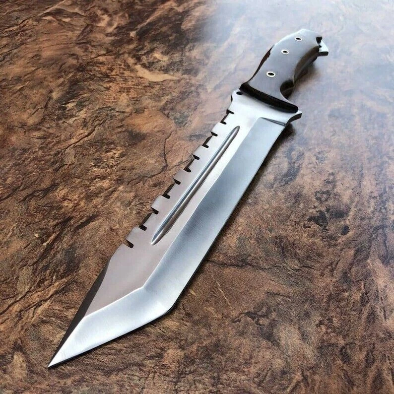 Custom Handmade D2 Tool Steel Hunting Bowie Knife Survival Camping Knife SPECIFICATIONS TOTAL LENGTH = 15.5 INCH BLADE LENGTH = 10 INCH BLADE MATERIAL = CARBON STEEL HANDLE LENGTH = 5.5 INCH HANDLE MATERIAL = WOOD SHIPPING WE WILL SHIP THIS KNIFE WITHIN 5 TO 7 DAYS AFTER RECEIVING PAYMENT WE USE TRACK ABLE COURIER SERVICE LIKE DHL UPS PAKISTAN POST REMOTE AREA CUSTOMER MUST PAY 45 $ EXTRA SHIPPING Returns are accepted within 14 days of delivery where item sold is unused & undamaged. Buyer will pay the return cost. Age Requirements & Verification: Strictly sold to 18+ ONLY. We may ask you to produce your ID to prove your age requirements. Please help us to keep our community safe.