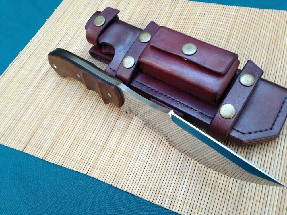 Custom Handmade J2 Steel Hunting Tracker Knife With Rose wood handle. Overall Length:12" Blade Length:7" Handle Length:5" Include Leather Sheath. Please Read All Information Before Buying. ABOUT EDGE: We usually sharp the edge normal due to safety reasons, If you want razor edge sharpness just tell us before shipping. Or you can do this by yourself with the help of high grain stone with hands. Quality Standards Handmade by skilled workers. Uniqueness, Designed sharply, gloriously and elegantly. Matchless Designed with sharp blade. Incredible hand grip with excellent balanced. We also make blades in high-carbon, alloy steel, D2 tool steel,J2 and ATS 34 Stainless steel . Shipping & Handling We only use trackable courier service. We Do Not Ship in Brazil, Russia, Israel. Parcel will reach you within 5 to 7 working days after receiving the payments.