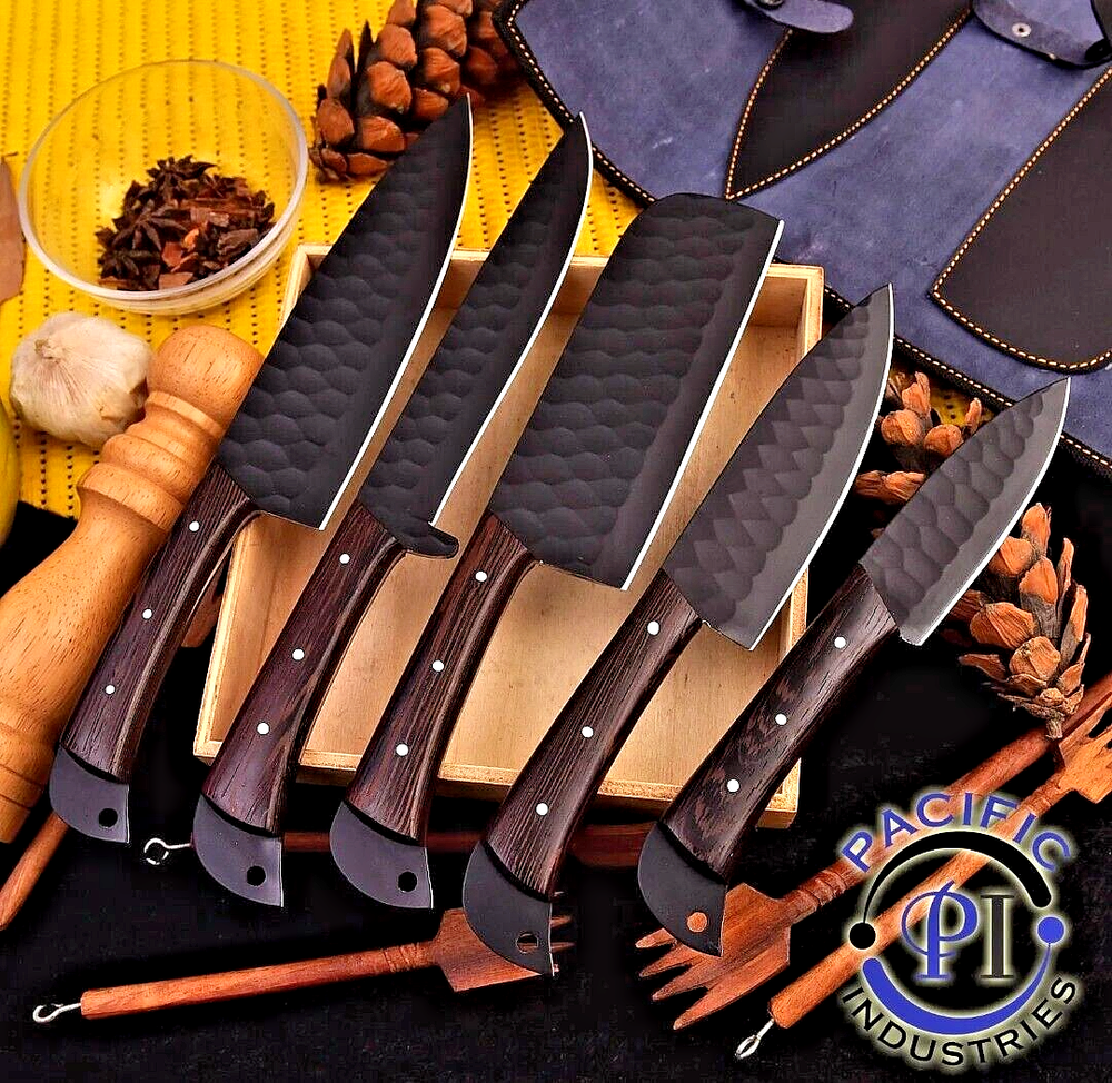 CUSTOM MADE FORGED CARBON STEEL CHEF KNIFE SET KITCHEN KNIVES W LEATHER BAG 2929