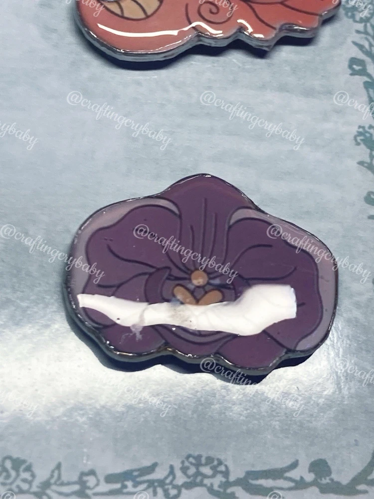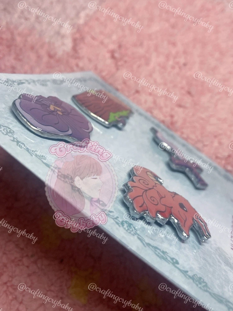 ♡ NOTE: back of the backing card will be physically watermarked for seller protection purposes upon purchasing! ♡ everything you see here was handmade by me & was handled very delicately! ૮₍ ˶ᵔ ᵕ ᵔ˶ ₎ა ♡ the pins are fully functional too so you can use them on any bag that you wish or simply just for display, although i do highly recommend using them on an ita bag insert for wearable display and protection! ♡ pins have been completely cured with resin to prevent any damage to the design & to add sturdiness. i’m still learning the ropes with using resin, so it’s far from perfect & has a couple of tiny air bubbles/smudges so please keep that in mind! ♡ coated the back & edges with silver acrylic to imitate the enamel of the real enamel pins! ♡ NOTE: coloring may look different depending on the lighting and sizing may be different compared to the original! ♡ NOT ACCEPTING CANCELLATIONS SO PLEASE BE SURE BEFORE BUYING