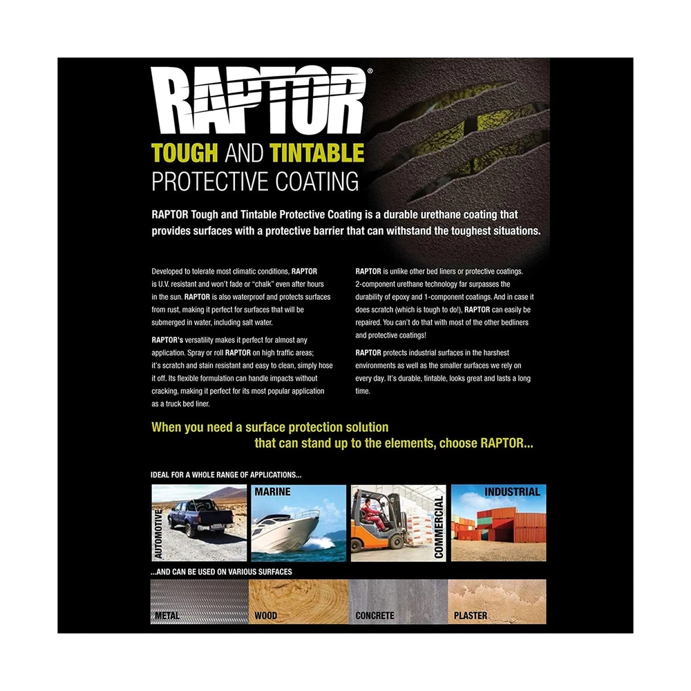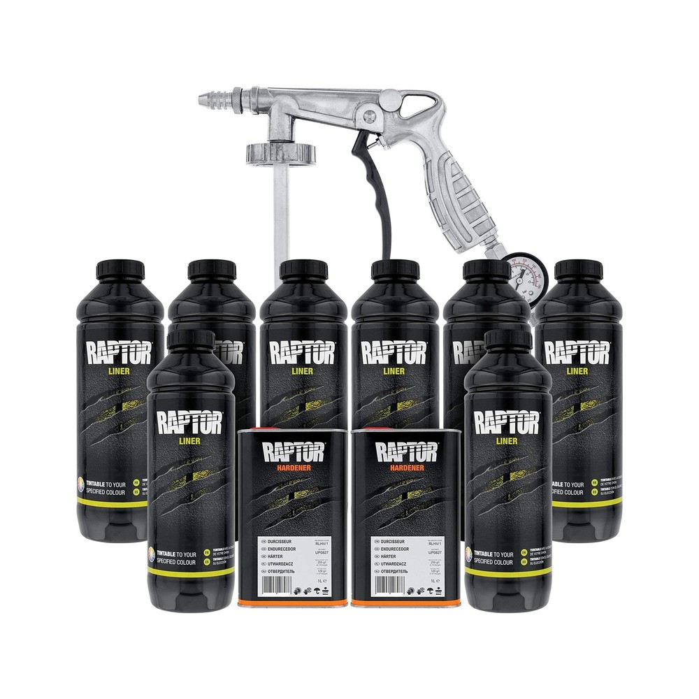 CUSTOM SHOP U-Pol Raptor Tintable Urethane Spray-On Truck Bed Liner Kit and Custom Coat Spray Gun with Regulator, 8 Quart Kit Description Features: Easy to use: Tint - Add hardener - Shake - Spray Custom Coat Bedliner Spray Gun features adjustable nozzle and includes Regulator and Gauge Abrasion and Stain Resistant Protects against rust corrosion salt damp & extreme temperatures Waterproof flexible helps deaden sound & vibrations Product Details: Brand: Custom Shop Color: Tintable Finish Type: Textured Size: 8 Quart Kit Item Volume: 7570.8 Milliliters Special Feature: Adjustable Nozzle Unit Count: 192.33 Fluid Ounces Paint Type: Urethane Specific Uses For Product: Truck Beds, Concrete, Metal, Aluminum, Fiberglass, and Other Surfaces Surface Recommendation: truck beds, wood, concrete, metal, aluminum, fiberglass, most OE manufacturer's finishes Brand: Custom Shop Color: Tintable Finish Type: Textured Size: 8 Quart Kit Item Volume: 7570.8 Milliliters Special Feature: Adjustable Nozzle Unit Count: 192.33 Fluid Ounces Paint Type: Urethane Specific Uses For Product: Truck Beds, Concrete, Metal, Aluminum, Fiberglass, and Other Surfaces Surface Recommendation: truck beds, wood, concrete, metal, aluminum, fiberglass, most OE manufacturer's finishes Indoor/Outdoor Usage: Outdoor Item Form: Liquid Included Components: Bedliner Spray Gun with Regulator Is Waterproof: True Package Information: Aerosol Can Full Cure Time: 24 Hours Coverage: 120 sq ft/gallon Water Resistance Level: Waterproof UPC: 845927041534 Manufacturer: Custom Shop Dry Time In Hours: 12 Item Weight: 17.6 pounds Package Dimensions: 15.1 x 10.2 x 10.2 inches Is Discontinued By Manufacturer: No Manufacturer Part Number: CUS KIT-0823-8-GUN Special Features: Adjustable Nozzle Date First Available: August 4, 2017 Delivery We Do Not Ship Outside of the Continental US. Return Policy All items qualify for returns within 30 days of receipt. Buyer is responsible for return shipping on any item that is not damaged. Feedback We take our reputation seriously, we buy and sell online, so we understand the value of trust. If you are unsatisfied with your order, please contact us and we will work with you to resolve it to your satisfaction.