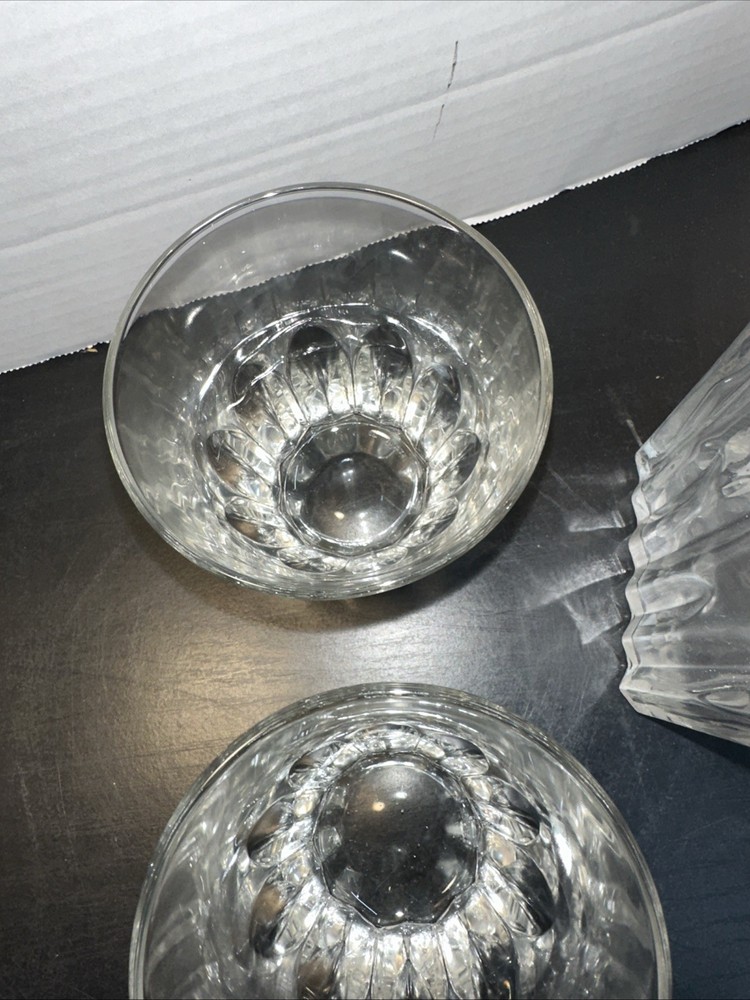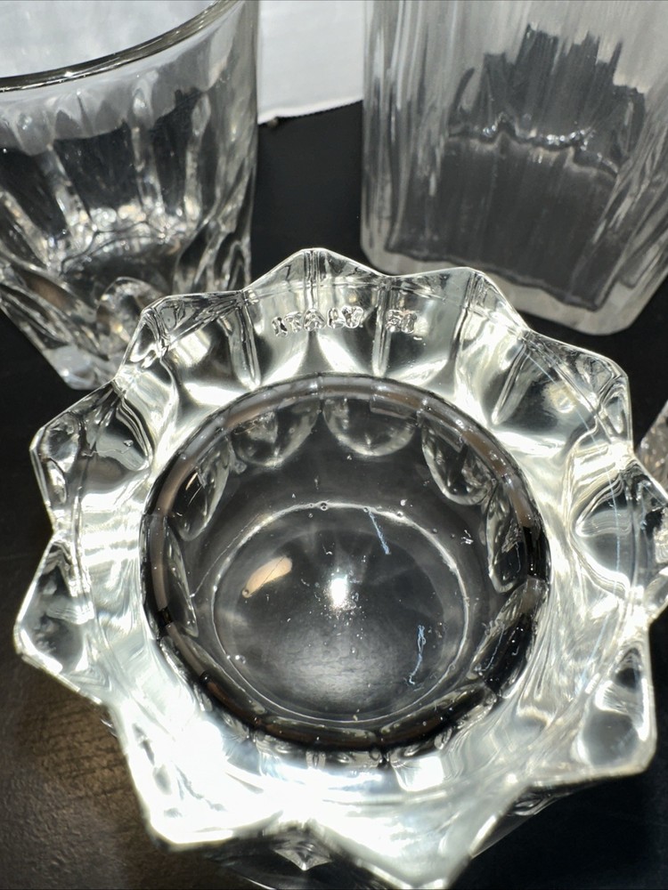 The CUT CRYSTAL GLASSWARE Decanter Set is a classic and elegant addition to any home bar or dining table. Made of high-quality glass in Italy, this 4-piece set includes decanter bottles and glasses with a country style theme. Perfect for all occasions, the clear color adds a touch of sophistication to any table setting. The Winchester brand ensures quality and craftsmanship, making this set a timeless piece for your collection. Lot G