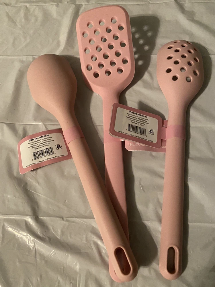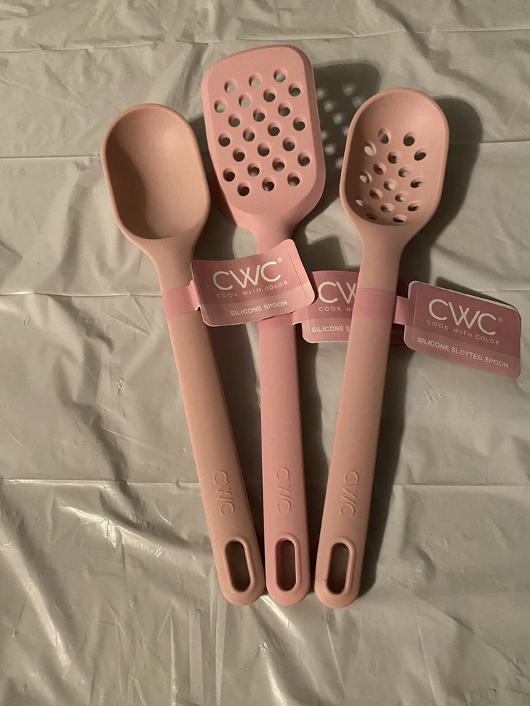 CWC Silicone 3 pieces Kitchen Utensils 1 Slotted Spoon, 1 Slotted Turner, 1 Spoon Pink NEW
