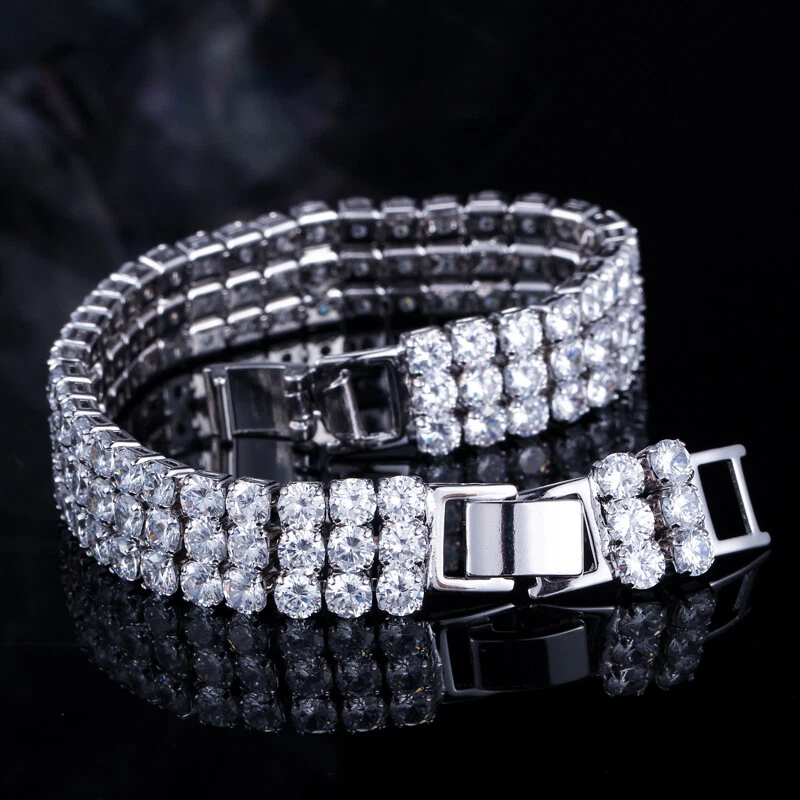 CWWZircons 3 Row Round Cubic Zirconia Silver Plated Big Wide Bridal Bracelets Specifications: 1. Condition: New 2. Material : Cubic Zirconia 3. Bracelet Size : 17.5 cm +2.4 cm extended clasp Features: 1. Cubic Zirconia High Quality Material - Diamond-like Brilliance , Prong Setting and CZ Stone are stable. 2. A Perfect Jewelry Gift for Women , Girls , Mother , Wife , Lover , Fiancee , Friends . 3. Suitable for Various Occasions: Ideal for Wedding, Prom, Pageant, Parties, Homecoming, Black Tie Formal Affairs, Holidays , Birthday , Christmas , Valentine's Day , Anniversary and Special Occasions. Package Includes: 1Pc Bracelet Payment Delivery details Terms of sales & Feedbacks About us & Contact us Our commitment Payment 1. We only ship item to your Ebay verified address . Please Make sure all address are the same 2.Please leave note in ebay when making the payment if you have any special request (colors/size). Delivery details We only send items to the registered eBay address.Items will be shipped within 2 business days from the date payment is received (not include public holiday and weekend) . As per eBay regulations, import duties, taxes, and customs charges are the buyer's responsibility. Please check with your country's customs office to determine what these additional costs may be prior to bidding or buying. Terms of sales & Feedbacks After-Sale Please contact us to request a return/replace/refund authorization .It will be best if you use ebay message to contact me. 1, Return and replacement request is available only the requests within 30 days after parcel received. 2, Returning the item as the same condition as received. Situation and solution Defectives ---Please contact us and provide a photo of the defective part. After situation confirmed,we will offer you refund/return/replacement according to the situation Not as Described ---Please contact us and provide a photo of the wrong part. After situation confirmed,we will offer you refund/return/replacement according to the situation Not Received ---Please undersatnding shipping on the way was out of our control ,because of the busy shipping season,holidays,bad weather or force majeure etc. It may be delay for days. But if it took too much time and not deliveried, Please message me, I will offer you solution for it. Feedbacks 1. If you are satisfied with our service, please leave us a + Good feedback and rate the details of the transaction (DSR) with a. . When you rate the shipping time part please take international transit into consideration.] Your recognition will make us more confident to develop business and serve you better. 2. Please contact us first if you have any problem with the items,we will solve it in time ! 3. Please do not leave Neutral or Negative Feedback before you contact us, Thanks For Your Business ! About us & Contact us Working time: Chinese time(Eastern eight zones):Monday to Friday ,9:00 am to 6:00 pm. We do not work on chinese legal holiday. Message reply: We will reply all messages within 24 hours of business time. Please contact us via ebay message, it was the best way for both you and us to solve problems. Any questions or anything you need, please feel free to contact us. Our commitment 1.Wholesale price will be offered to you if you need in bulk ! 2.About Size