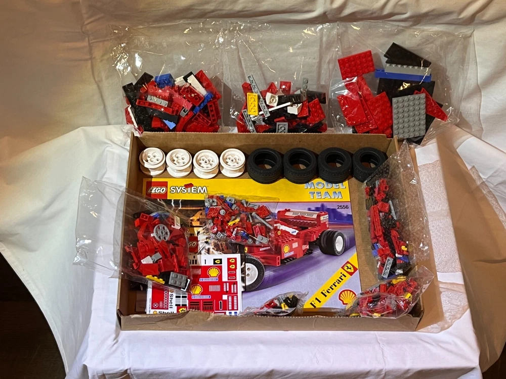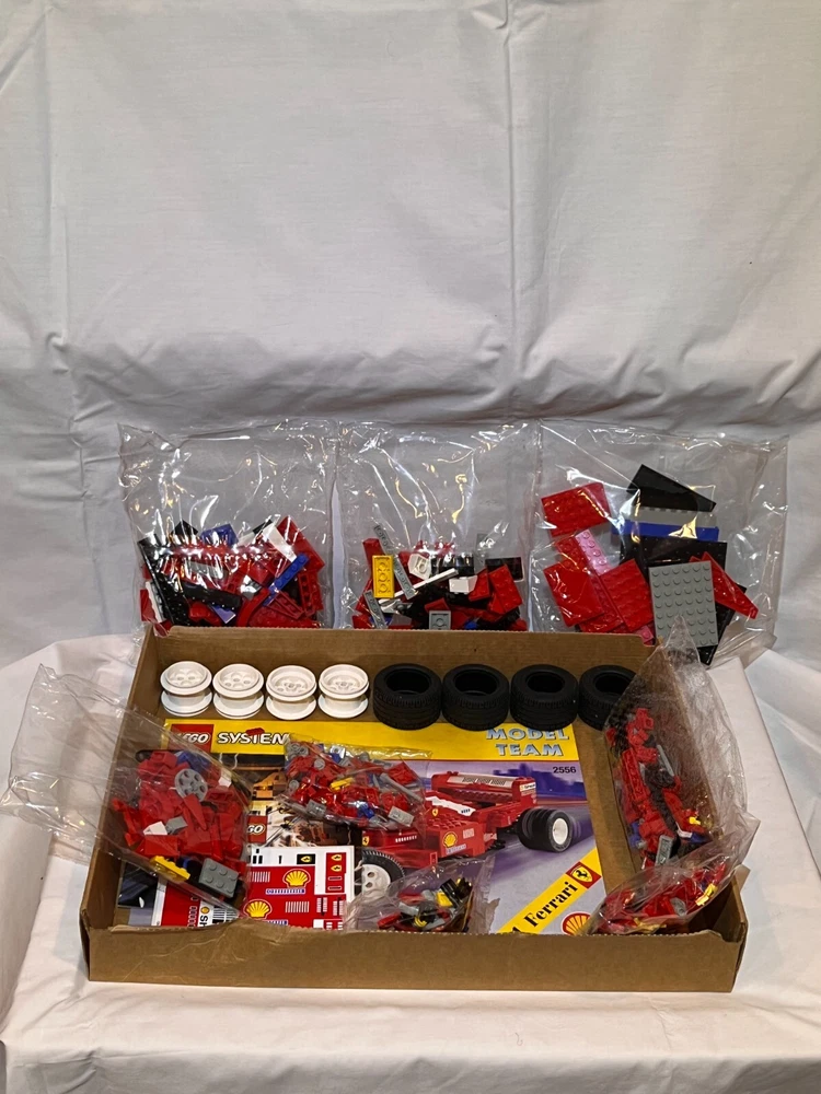 Lego 2556 Formula 1 Ferrari, Model Team collection, this is a rare set, box is opened and has wear, please look at the pictures carefully, set is complete, and not none of the bags are opened. Browse our other legos for sale, we will combine shipping if other items are purchased.