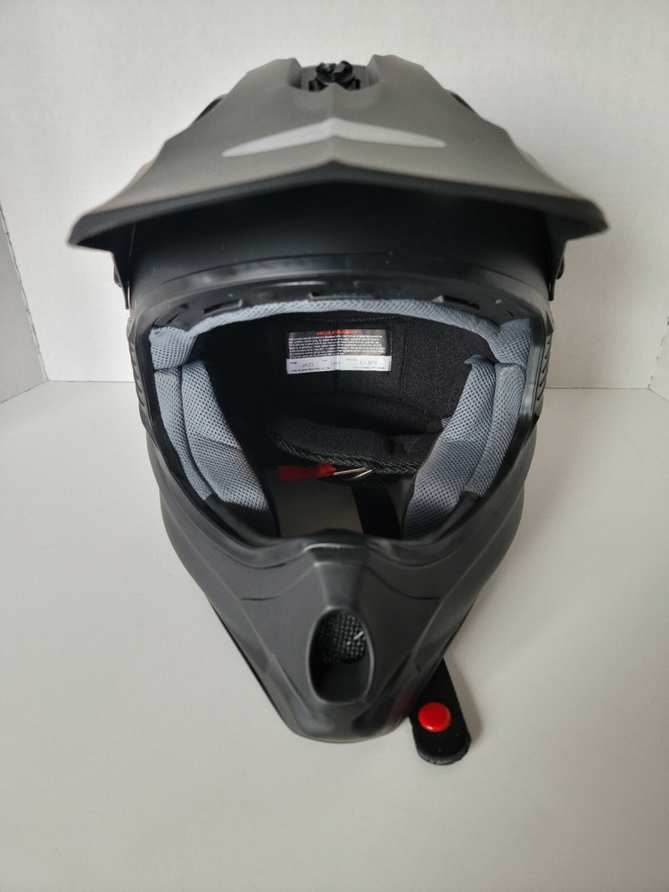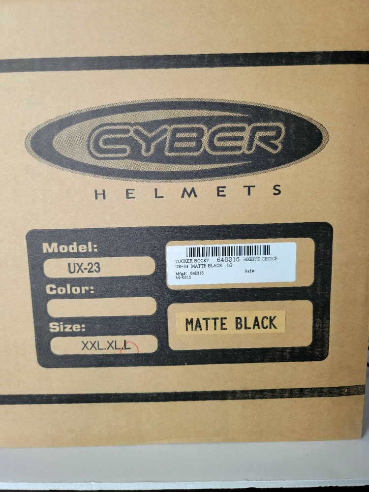 Thank you for stopping by the Misguided Flea!! The item you are looking at is a New CYBER UX-23 HELMET for Motor Sport Performance. This helmet is size Adult Large ( 23 1/4 - 23 5/8 inches) and is Matte Black. The box was opened for viewing and then re-boxed never to be used. These helmets are sold out at a lot of online dealers. FEATURES: ABS Shell construction has stealth aerodynamic style for motocross performance. Removable and washable air comfort liner and cheek pads Removable and adjustable visor peak, and a subtle shell recess to allow for a better fit and seal of goggles on the face. Integrated, vented roost guard. Air flow ventilation system for cooling and comfort. Meets or exceeds D.O.T. standards. Please be sure to look at all of the photos to be assured you will be happy with your purchase. If you would like more information or additional photos please feel free to contact me. All offers are appreciated and often accepted. Combined shipping is available on all purchases. Please add items to your cart and request an invoice so shipping can be adjusted. Thank you for looking and as always, Happy ebaying!!