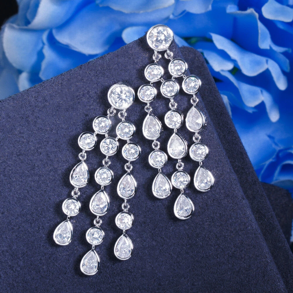CZ Crystal Long Dangle Tassel Drop Chandelier Earrings Silver Plated Ear Jewelry Specifications: Condition: New Material: Cubic Zirconia Color : White Size: 5 cm Metal Color :Silver Plated Features: 1. CZ Stone Material - Top Level Cubic Zirconia. Excellent Cut Simulated Diamond. Enjoy the dazzling sparkle from cubic zirconia Hoop earrings. 2. These Fashion Large Hoop Earrings are Suitable for Almost all of Sensitive Ears. These are the top Cubic Zircon Round Earrings for Daily Wear. 3. Suitable for Various Occasions: Ideal for Wedding, Prom, Pageant, Parties, Homecoming, Black Tie Formal Affairs, Holidays , Birthday , Christmas , Valentine's Day , Anniversary and Special Occasions. 4. A Perfect Jewelry Gift for Women , Girls , Mother , Wife , Lover , Fiancee , Friends , Bride , Bridesmaid . Package Includes: 1 Pair Earrings Payment Delivery details Terms of sales & Feedbacks About us & Contact us Our commitment Payment 1. We only ship item to your Ebay verified address . Please Make sure all address are the same 2.Please leave note in ebay when making the payment if you have any special request (colors/size). Delivery details We only send items to the registered eBay address.Items will be shipped within 2 business days from the date payment is received (not include public holiday and weekend) . As per eBay regulations, import duties, taxes, and customs charges are the buyer's responsibility. Please check with your country's customs office to determine what these additional costs may be prior to bidding or buying. Terms of sales & Feedbacks After-Sale Please contact us to request a return/replace/refund authorization .It will be best if you use ebay message to contact me. 1, Return and replacement request is available only the requests within 30 days after parcel received. 2, Returning the item as the same condition as received. Situation and solution Defectives ---Please contact us and provide a photo of the defective part. After situation confirmed,we will offer you refund/return/replacement according to the situation Not as Described ---Please contact us and provide a photo of the wrong part. After situation confirmed,we will offer you refund/return/replacement according to the situation Not Received ---Please undersatnding shipping on the way was out of our control ,because of the busy shipping season,holidays,bad weather or force majeure etc. It may be delay for days. But if it took too much time and not deliveried, Please message me, I will offer you solution for it. Feedbacks 1. If you are satisfied with our service, please leave us a + Good feedback and rate the details of the transaction (DSR) with a. . When you rate the shipping time part please take international transit into consideration.] Your recognition will make us more confident to develop business and serve you better. 2. Please contact us first if you have any problem with the items,we will solve it in time ! 3. Please do not leave Neutral or Negative Feedback before you contact us, Thanks For Your Business ! About us & Contact us Working time: Chinese time(Eastern eight zones):Monday to Friday ,9:00 am to 6:00 pm. We do not work on chinese legal holiday. Message reply: We will reply all messages within 24 hours of business time. Please contact us via ebay message, it was the best way for both you and us to solve problems. Any questions or anything you need, please feel free to contact us. Our commitment 1.Wholesale price will be offered to you if you need in bulk ! 2.About Size