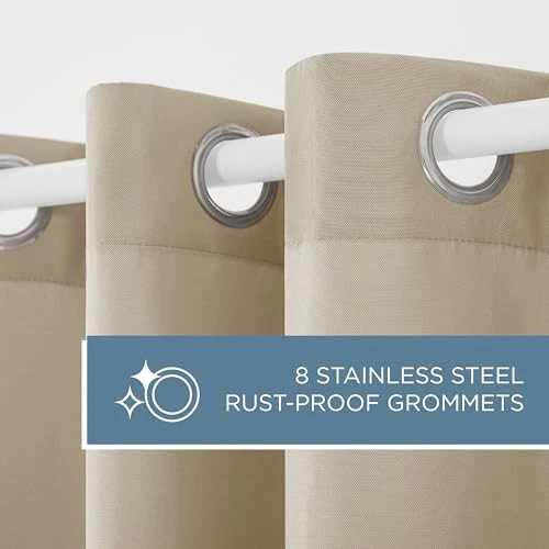 The Cabana Solid Indoor/Outdoor Light Filtering Grommet Top Curtain Panels are the perfect addition to any space. Style these heavyweight curtains inside or outside for added privacy, filtering out strong sunlight, or simply updating your indoor/outdoor spaces This curtain panel set is water repellent and includes eight (8) rust-proof grommets, making them ideal for use on your outdoor patio, deck, pergola, cabana, lanai, or sunroom windows. These heavy-duty curtains fit any curtain rod up to 1.25” in diameter and can be easily spot cleaned as needed. Heavyweight, Light Filtering Indoor Outdoor Curtain Panel Set Includes two (2) curtain panels, each measuring 54"W x 144"L. Light Filtering Opacity provides privacy while allowing some natural light to shine through 100% Polyester, with textured, heavy duty feel Grommet top treatment with eight (8) stainless steel grommets Water repellent curtains ideal for outdoor or indoor use Spot clean or hand wash. Use iron on low heat to remove wrinkles.