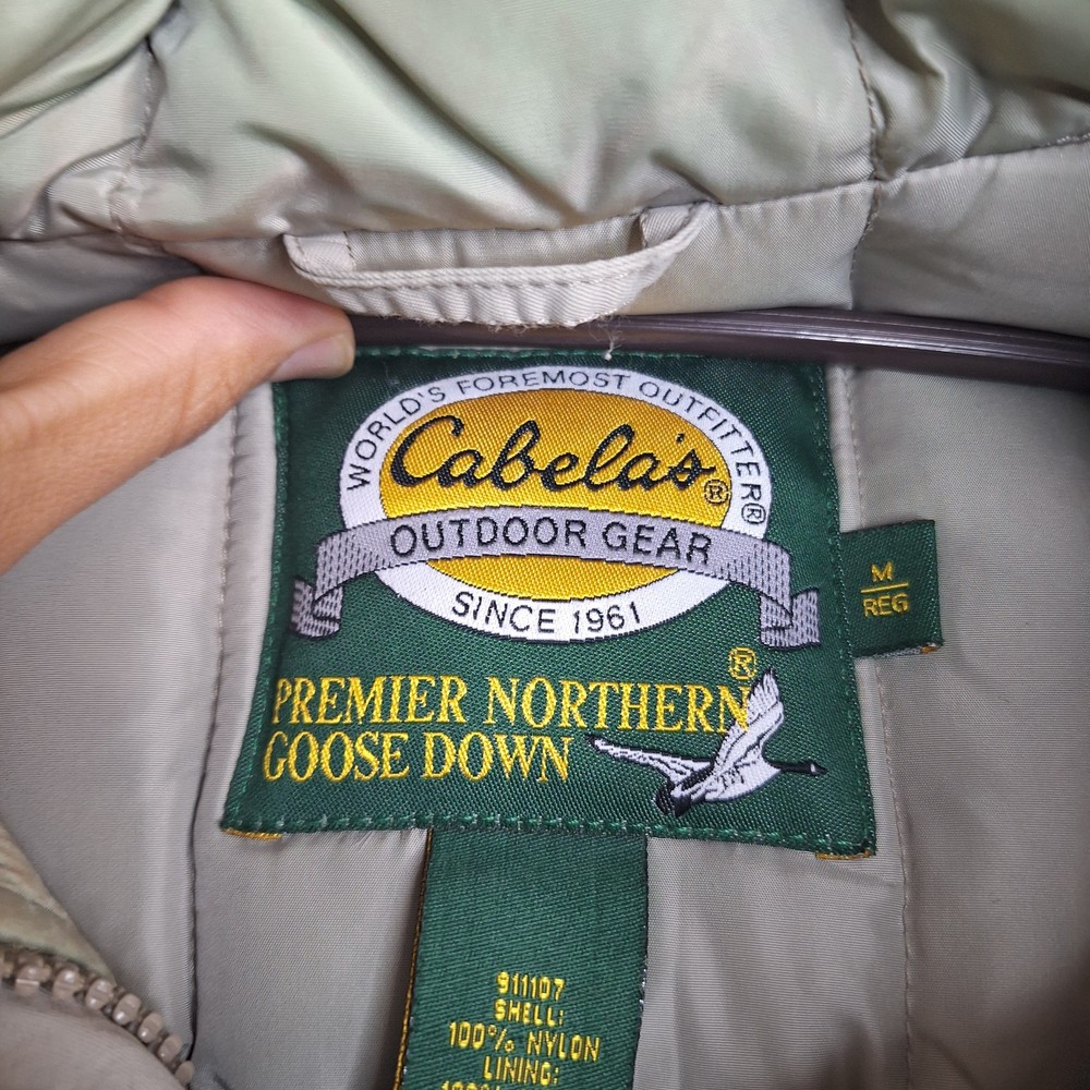Cabelas Goose Down Coat Mens M Light Beige Hooded snap Zip Quality used condition. Please check out the measurements before buying to ensure a perfect fit Shirt Size on Label M Shoulder- Hem 29.00'' Shoulder- Shoulder 21.00'' Shoulder- Wrist 24.00'' Armpit- Armpit 23.00'' Midsection 22.00'' Everything ships within a day. Spot cleaned according to manufacturer's recommendations. Has a chance of wrinkling in the mail. Feel free to message me with any questions. Thank you very much. 2/2/26