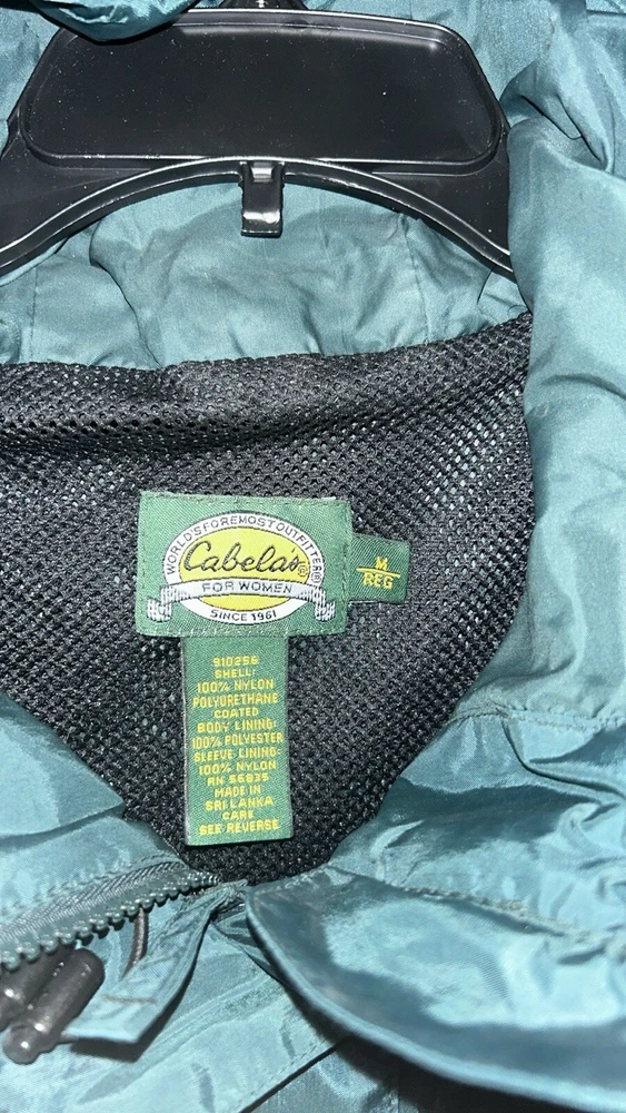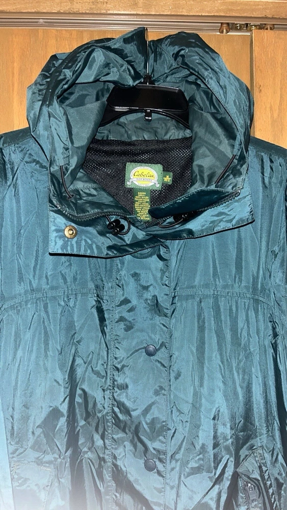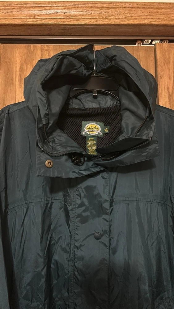 Features: Hooded, Packable, Pockets, Mesh Lined Lining Material: Polyester, Nylon Type: Jacket, Coat Performance/Activity: Outdoors Brand: Cabela's Size: M Color: Green Department: Men Size Type: Regular Garment Care: Machine Washable Fabric Type: Nylon Closure: Zip Country/Region of Manufacture: Sri Lanka Vintage: No Pattern: Solid Theme: Outdoors Accents: Zipper Outer Shell Material: Nylon Occasion: Casual, Workwear Insulation Material: NA Style: Windbreaker, Rain Coat