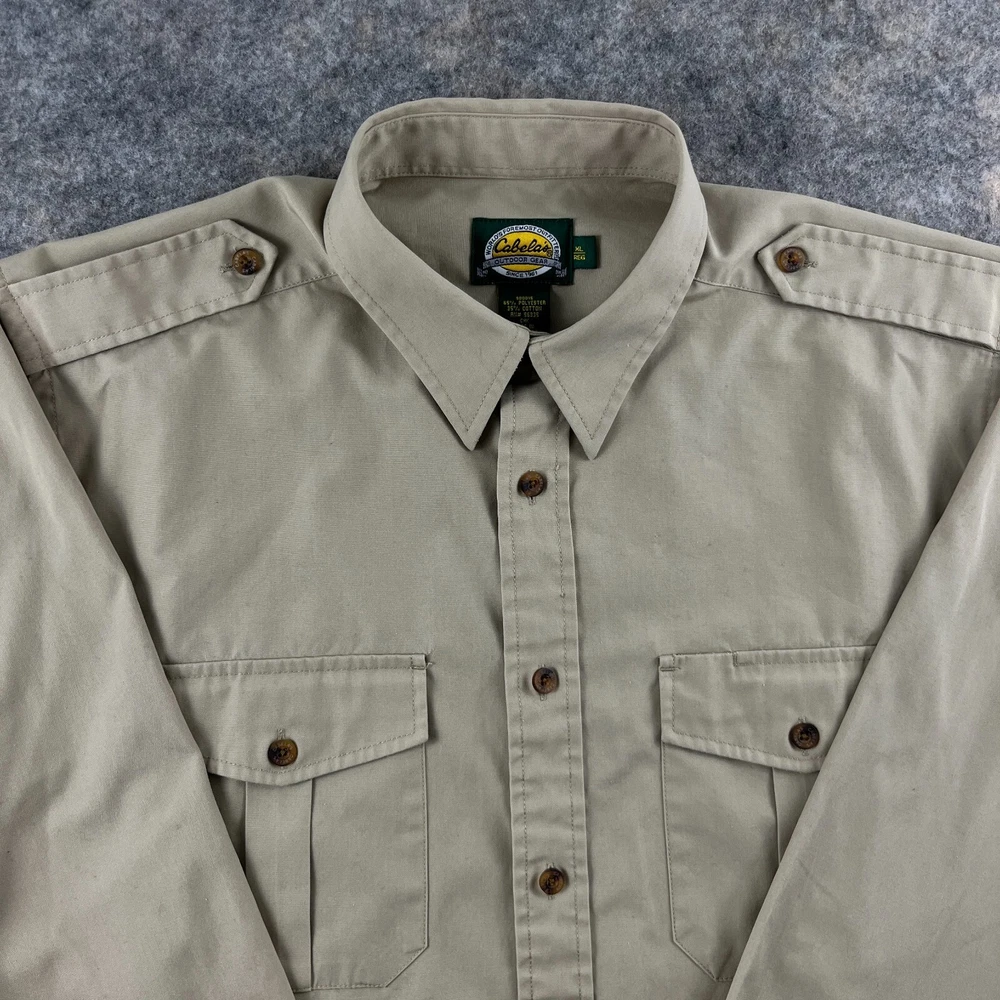 Cabelas Shirt Men's XL Beige Outdoor Gear Pleated Long Sleeve Pockets Button Up Description Cabelas Shirt Men's XL Beige Outdoor Gear Pleated Long Sleeve Pockets Button Up . Product Detail • Brand : Cabelas • Department : Men's • Color: Beige • Type: Shirt All clothing items are pre-owned and in good condition. Measurements are included in the photos. These items were barely worn and come from a smoke-free home. Please review all pictures carefully for any flaws, stains, or issues. Shipping: Items are shipped everyday via USPS mail with tracking number. Returns: 30-day returns accepted. Customer Service: Got questions? Feel free to contact us. We're here to assist you with anything you need. Feedback: Your satisfaction is important to us. If you're pleased with your purchase, please consider leaving positive feedback. If any issues arise, contact us before leaving negative feedback, and we'll do our best to resolve it. Thank you for choosing FlipMode!!