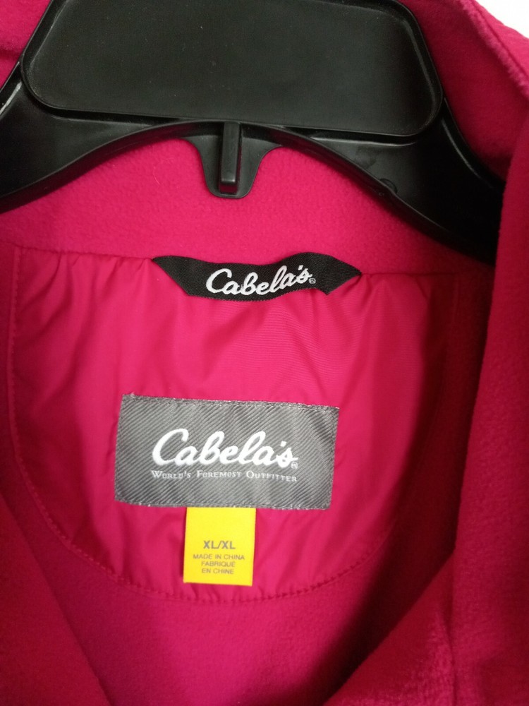 Pattern: Solid Accents: Logo Lining Material: Polyester Insulation Material: Polyester Performance/Activity: Walking Color: Magenta Pink Brand: Cabela's Closure: Zip Features: Lined Occasion: Casual Style: Bomber Jacket Theme: Outdoor Department: Men Sleeve Length: Long Sleeve Size: XL Vintage: No Size Type: Regular Seller Notes: “EXCELLENT CONDITIONS” Outer Shell Material: Polyester Season: Winter Type: Jacket