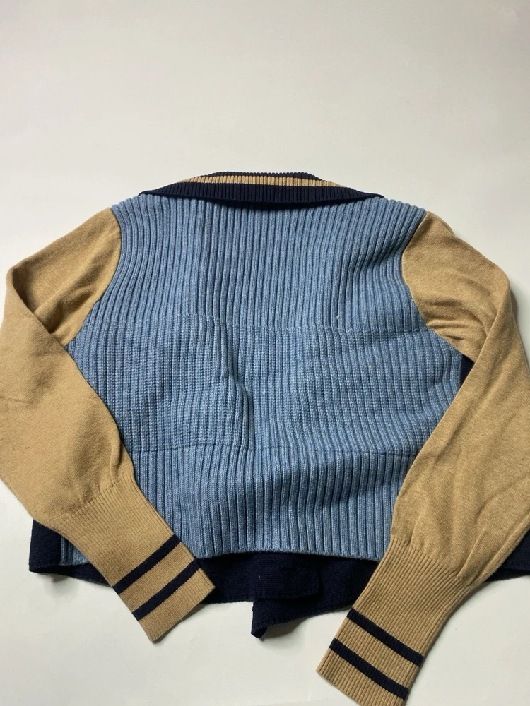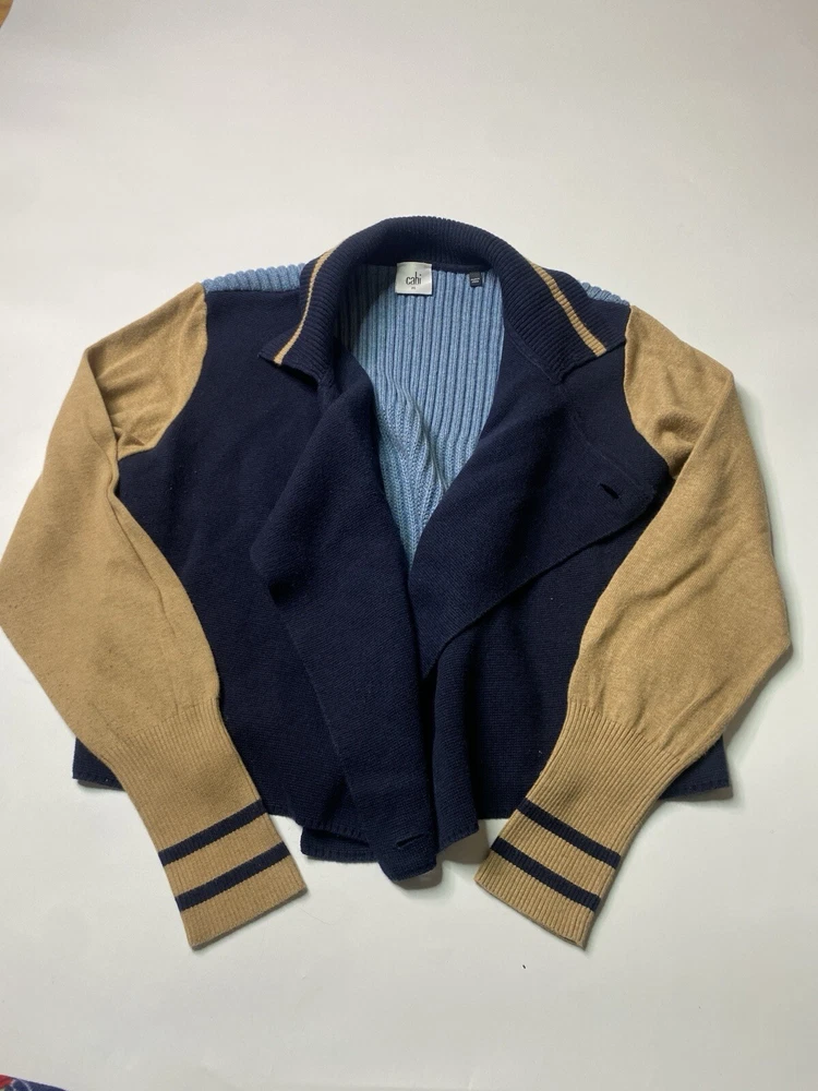 Cabi Sweater Womens Size M Cropped Cardigan Varsity Preppy Colorblock Academia