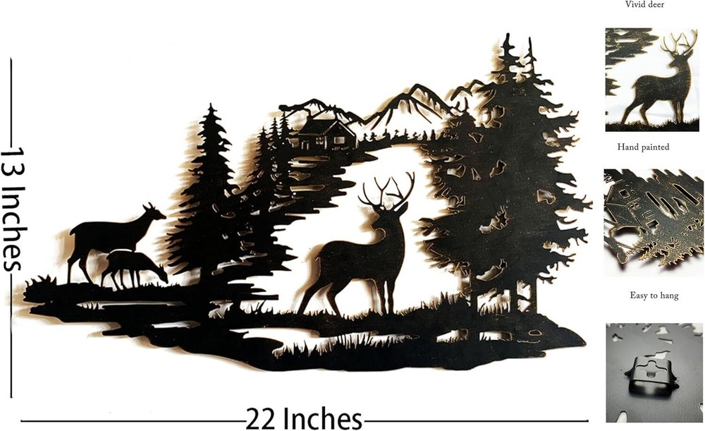 Cabin Decor Metal Deer Wall Art Rustic Wall Decor Hanging for Bathroom Living... Cabin Decor:Designed by Remenna ,Our deer wall art is made of sturdy metal with rustic tone each item is hand -painting individually to create a unique one Easy to Hang :Two hooks on the back of Deer Wall Decor for easy hanging, you just need nail it on the wall. 4 small metal ball tokeep the decor more stable Widely Application:This deer metal wall art can not only be placed on the wallsof the home living room, farmhouse bedroom, cabinbathroom, study, kitchen, dining room, entryway, hallway but alsohung on your garden, yard, terrace, porch, deck, balcony. Gifts: Excellent as a housewarming party gift, anniversary gift,birthday present, or Christmas gift. A Beautiful Design: With vivid deer and wooden house in the forest. This product implication"people to happy thing pursue, toperfect yearning"it provides the time to enjoy and appreciatenature boosting your creativity, health, and quality of life Shipping We offer FREE shipping on all orders! We ship within Three business days of payment, usually sooner. We use a selection of shipping services such as UPS, FedEx, USPS etc. We only ship to the lower 48 states, no APO/FPO addresses or PO Boxes allowed. Local pickups and combined shipping options are not provided at this time. Return You can return a product for up to 30 days from the date you purchased it. Any product you return must be in the same condition you received it and in the original packaging. Please keep the receipt. Customer satisfaction is very important to us. If you have any problem with your order, please contact us and we will do our best to make you satisfied. Contact Us If you have any queries, please contact us via ebay. We usually respond within 24 hours on weekdays. Please visit our eBay store to check out other items for sale! Thank you for shopping at our store.