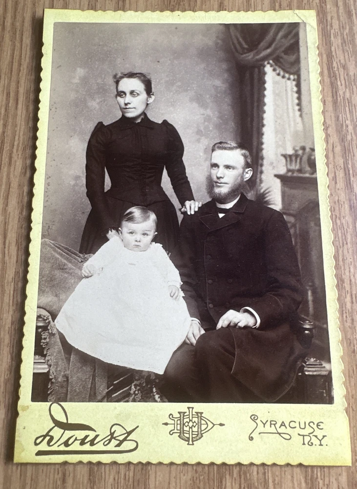 This stunning cabinet card features a precious Victorian couple and their daughter, captured by photographer Issac U Doust in Syracuse, New York in the late 1800s. The photograph showcases the family's exquisite fashion sense and provides a glimpse into the era's style. The card is in vintage condition and would make a fantastic addition to any collection of antique photographs. The cabinet photo measures [insert measurement here] and is in the format of a cabinet card. The photograph's antique quality and stunning theme make it a must-have for any collector of vintage photographs. Don't miss your chance to own a piece of history with this beautiful Victorian photograph. 4.25x6.5" Our Terms Shipping and Handling for our Photographs is $5.00. This rate is good for a single photograph or unlimited number of photographs. We ship First Class by USPS with bubble mailers when your total order is less than $100.00. If your total order exceeds $100, we will ship by USPS Priority Mail. All packages shipped will include a tracking number. We have a 14-day return policy for all items. We will leave feedback when your item is packaged and shipped. Please return this feedback as our receipt you have received the item. SJ