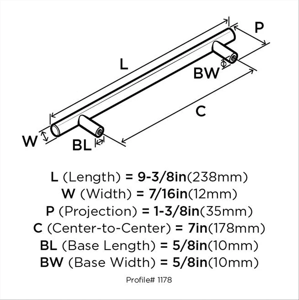 The 10BX1178G10 Bar Pulls 7 in (178 mm) Center-to-Center Pull is finished in Satin Nickel. Modern functionality meets straightforward styling. Simple. Bold. True. The sleek and sophisticated design of the Bar Pulls Collection makes a statement with clean lines and smooth textures. Enduring and versatile, satin nickel marries delicate brushing with a subtle warm hue to produce an approachable, classic presentation that resonates across all design styles. Founded in 1928, ’s award-winning home solutions including decorative and functional cabinet hardware, bath accessories, decorative hooks and wall plates have built the company’s reputation for chic design accessories that inspire homeowners to express their personal style. offers a variety of styles and finishes at affordable prices that add the perfect finishing touch to any room VERSATILE - Contemporary style adds an easy designer upgrade to any cabinet drawer, cabinet door or furniture piece DURABLE - High quality construction for lifelong durability PACK of 10 - Includes necessary mounting hardware for easy installation - Coordinates seamlessly with finishes from popular plumbing and lighting brands DISCLAIMER - We do our best to show colors accurately, but they might look different on your screen due to individual monitor settings
