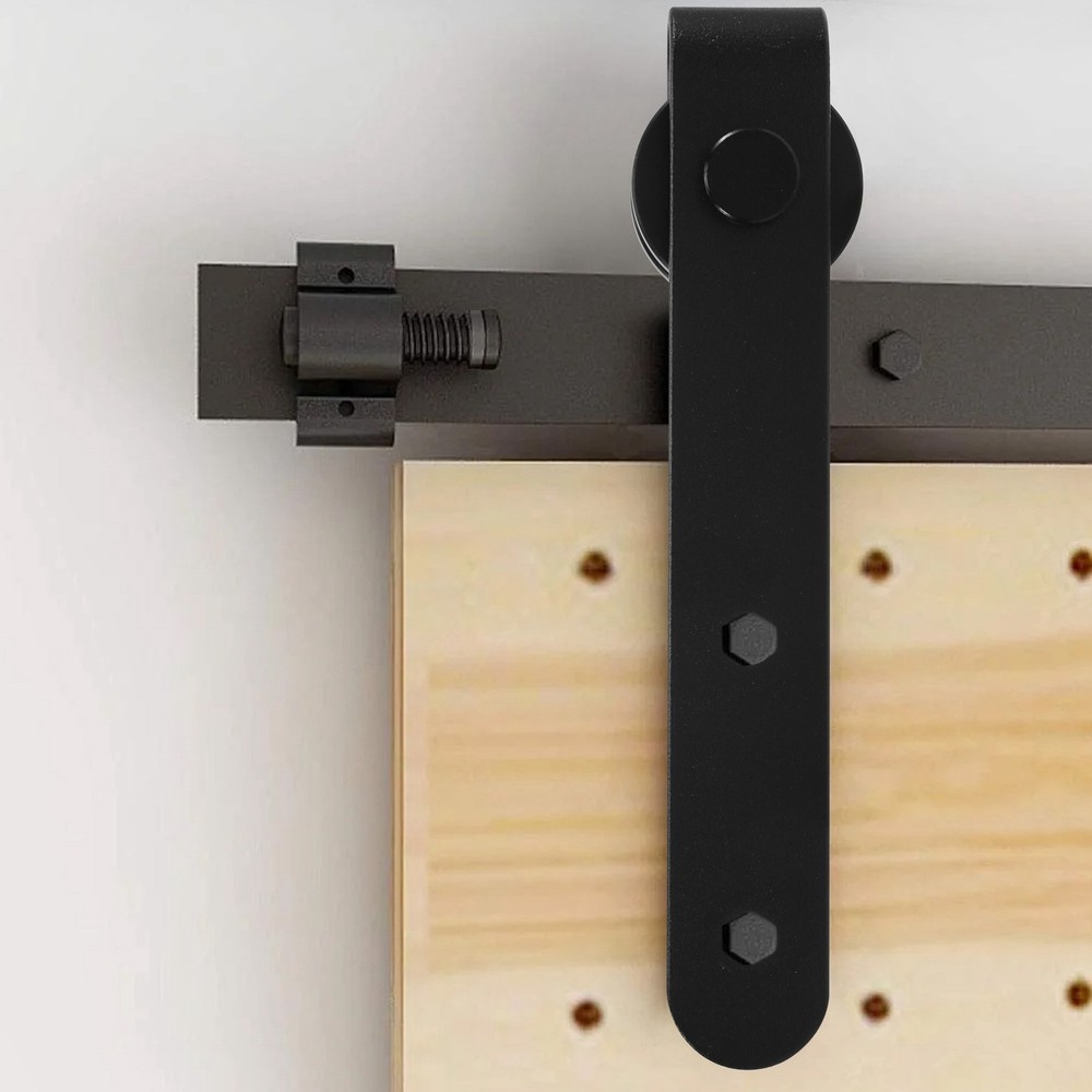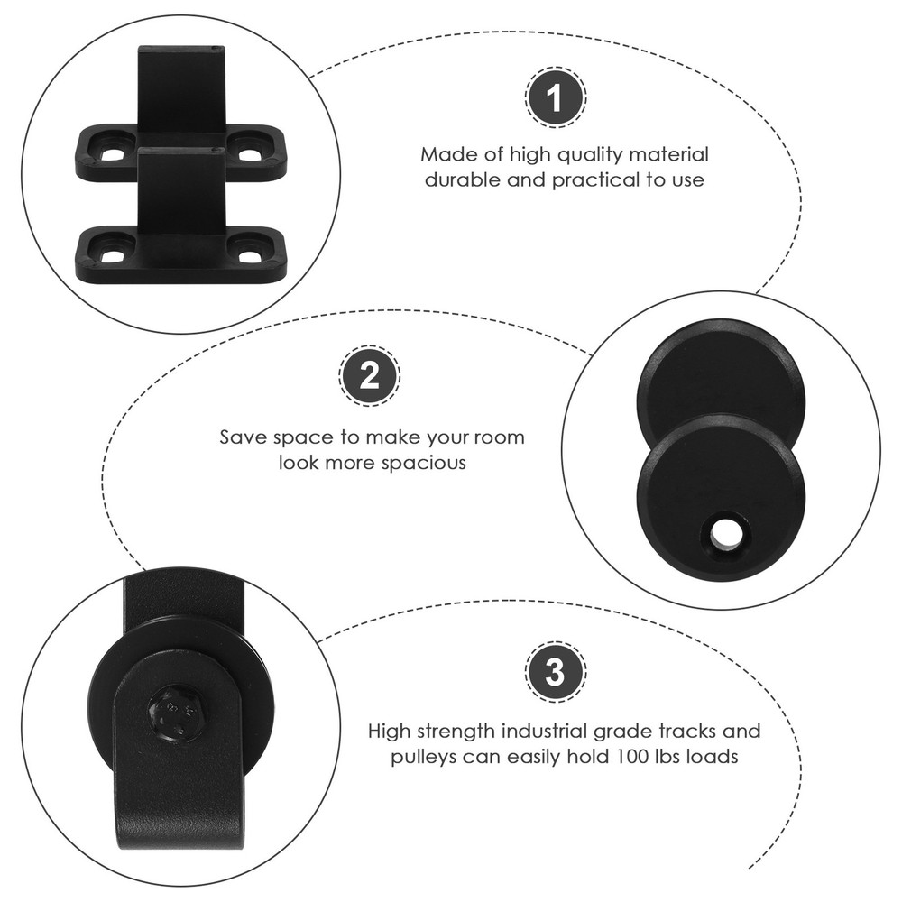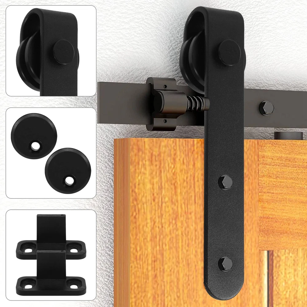 Cabinet Sliding Barn Door Hardware Kit Super Sliding Door Hardware1113 Made of high quality material, and practical to use & STURDY - High strength industrial grade tracks and pulleys can easily hold 100 lbs loads; Great for doors 1/2 inch and 1-1/8 inch thickness. material and excellent forging process provide a safe and guaranteed life . strong and sturdy: Save space: make your room look more spacious Suitable for cabinets, etc. Easy to match: suitable for your home style Material:Carbon steel + POM colour:black Package Contents: 2 * Roller 2 * End Caps 2 * Floor Guide 4 * Screws with nuts