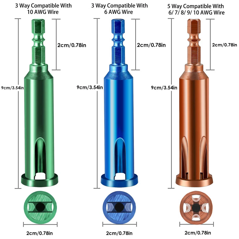 Cable Connector Wire Twisting Tool Stripper Twister Powerful Drill Driver Tools Bullet Points: Quality Construction: Built with high-quality stainless steel material, our Wire Twisting Tool provides excellent rust and wear resistant for longer-lasting performance. Maximize your results with this durable tool. Speedy Stripping: Make wire management a breeze with this innovative tool. Its versatile design allows it to quickly complete tasks such as stranding, stripping, and paralleling wires. Save time and effort by easily attaching it to an electric drill for quick stripping and wiring jobs. Pressing Parallel: Our tool provides a better twisting effect that securely closes parallel wires, preventing any risk of loosening or breaking. This makes the alignment tighter and improves electrician safety and efficiency. Ease Your Workload: Eliminate manual twisting and wrist strain with this Wire Twisting Tool. Designed to make work easy and more comfortable, it fits most electric drills and can twist up to five wires simultaneously. Say goodbye to finger and wrist fatigue. Multiple Applications: Achieve perfect wire twists with ease using this tool. Whether you're working with soft or hard wires, it meets all electrician needs. Suitable for 3-wire, 4-wire, 5-wire 2.5-4.0mm² wires, it's widely applicable to different wiring projects. Introducing our Wire Stripping and Twisting Tool, designed for longer service life and to meet different electrician needs. Easily attachable to an electric drill, this tool provides a better twisting effect and makes work easy. Specification: Product name: Wire Twisting Tool Product material: alloy steel Product size: (approx.)2*2*9cm/0.79*0.79*3.54 inches Green model: Suitable for 3-wire 2.5mm² wires Blue model: Suitable for 3-wire 4.0mm² wires Gold model: 5-wire universal model (applicable to 3-wire, 4-wire, 5-wire 2.5-4.0mm² wires) Product List: 1*Wire Twisting Tool Notes: Due to different lighting and screen settings, the product color may be slightly different from the picture. Due to the difference in manual measurement, please allow a 1-3cm difference in size. 1.You can make a Credit payment via Paypal.Paypal will let you use MasterCard,Visa to pay. 2.Payment should be completed within 5 days after auction closed, or unpaid dispute will be filed for an closing auction.An unpaid case will be filled after 4 days. ● We strive for 100% customer satisfaction ! ● Positive Feedback is very important to us. ● We hope that you contact us immediately BEFORE you give us neutral or negative feedback, so that we can satisfactorily address your concerns. ● We promise to offer the lowest price and high quality produce. Dear buyers : ● Welcome to my store ! ● Your satisfaction is our top goal,we appreciate your patronizing. ● If you have any questions, please contact us before leave negative or neutral feedback, we will try our best to solve the issue to your satisfaction, thanks ! ● If you are satisfied with our service, please rate the details of the transaction (Detailed Seller Ratings) on eBay. ● Please always talk to us via ebay Message. ● We appreciate your business and look forward to growing our e-Bay sales with satisfied customers.