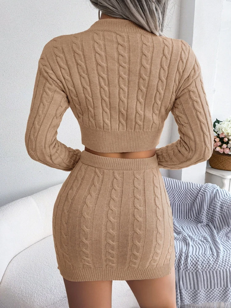 Features: Cable-knit Number of pieces: Two-piece Stretch: Moderate stretch Material composition: 50% viscose, 22% polyamide, 28% polyester Care instructions: Machine wash cold. Tumble dry low. Imported Product measurements: S:Bust 41.34 in, Shoulder 14.57 in, Sleeve Length 21.65 in, Top Length 14.96 in, HIP 39.37 in, Length 15.75 in M:Bust 42.91 in, Shoulder 15.35 in, Sleeve Length 22.05 in, Top Length 15.35 in, HIP 40.94 in, Length 16.14 in L:Bust 45.28 in, Shoulder 16.14 in, Sleeve Length 22.44 in, Top Length 15.75 in, HIP 43.31 in, Length 16.54 in