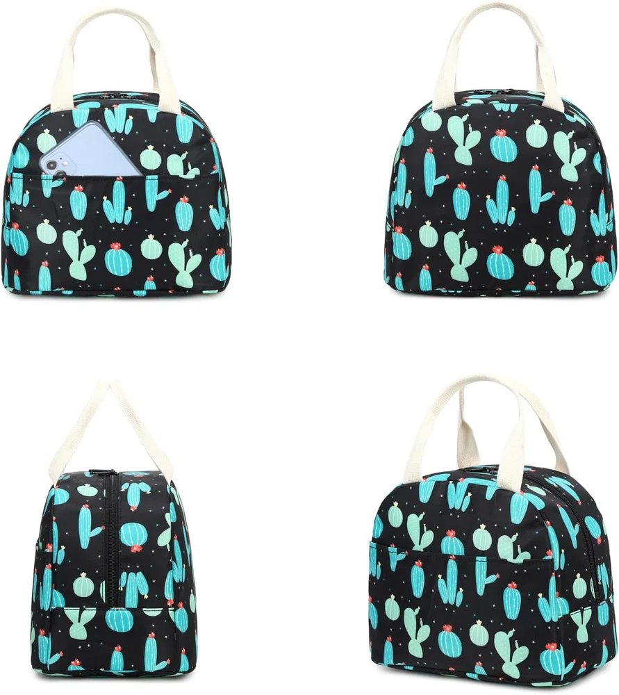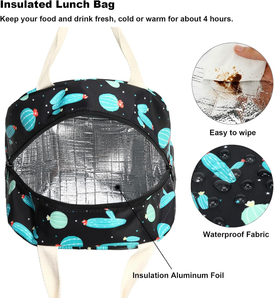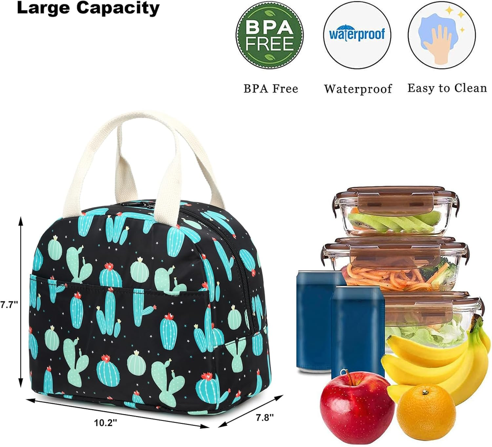 Cactus Insulated Lunch Bag for Women Girls, Reusable Lunch Box Picnic Tote Bags
