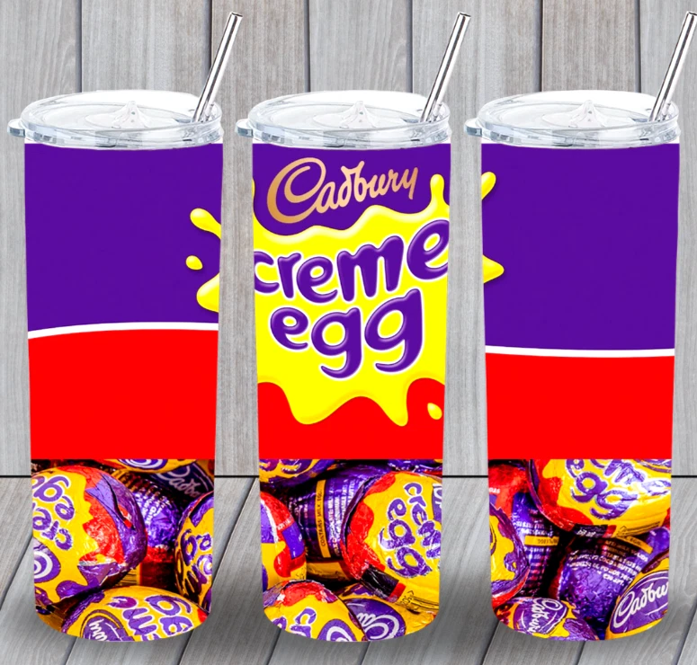 Cadbury Creme Egg Candy Multicolor 20oz Insulated Tumbler Lid Plastic Straw New