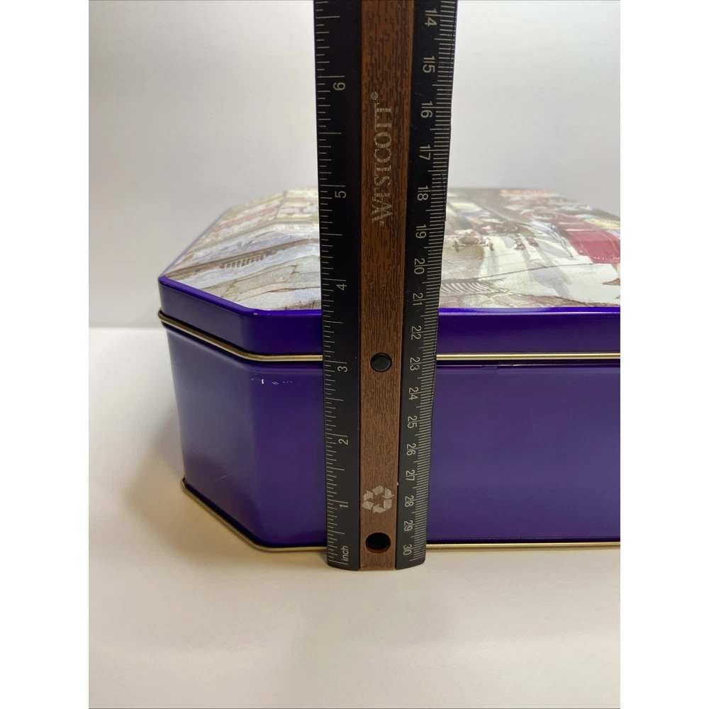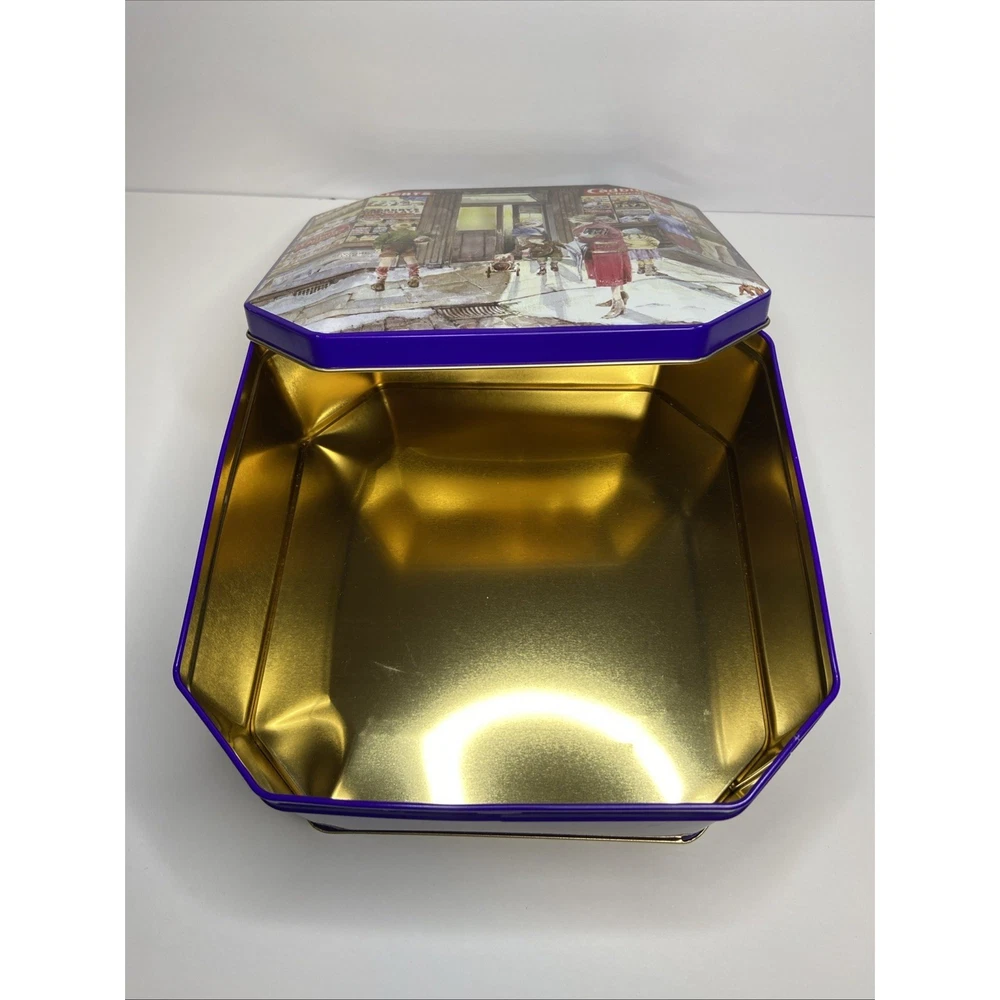 The Cadbury Tin Chocolate Holidays Christmas "Vintage Sweet Shop" is a festive and nostalgic collectible featuring a multi-color design. This tin, bearing the iconic Cadbury brand, is perfect for storing holiday treats or serving as a decorative piece during the Christmas season. With a charming vintage feel, this tin brings a touch of old-world sweetness to any space, making it a delightful addition to any collector's display.( Tin is empty)