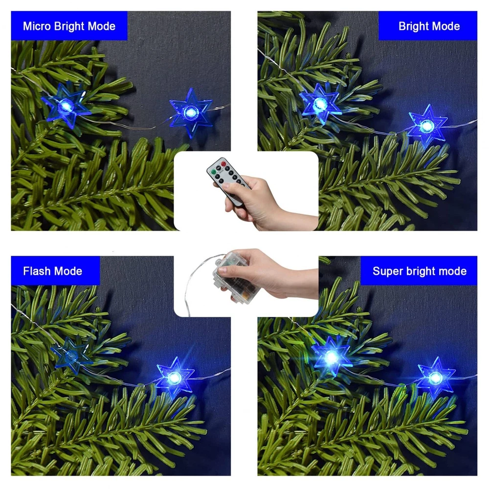 Cadena de luces Rocinha Hanukkah decoraciones estrella de David 10 pies 30 LED judaicas...