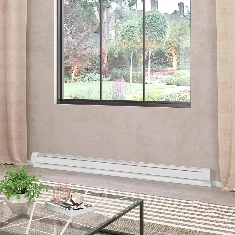 Store New Arrivals Add to Favorite View Feedback Contact Cadet Baseboard Heater 96" 240-208V 2000-1,500W White Description Amperage (A) 8.3 A Baseboard Heating Type Electric Color White Color Family Whites Heat rating (BTU/hour) 6824 Btu/h Heating Product Type Baseboard Heating Technology Type Convection Hydronic No Pack Size 1 Power/Fuel Type Electric Product Weight (lb) 13.75 lb Returnable 90-Day Thermostat No Vented No Voltage (V) 240 V Wattage (W) 2000/1500 W Certifications and Listings UL Listed Manufacturer Warranty Lifetime Product Depth (in) 2.5 in Product Height (in) 7 in Product Length (in) 96 in Electric baseboard heater quietly warms up to 350 sq. ft. space Simple-to-use, twist-dial T522W wall thermostat also included Easy, efficient installation with universal wiring at each end A Cadet electric baseboard heater with a T522W wall thermostat included is a simple and economical way to add quiet, convection heat wherever it's needed in your home. This white 96-inch heater is an industry-standard size making it ideal for replacement or new construction, and is designed for easy installation with pre-punched mounting marks and wiring at both ends. Be sure to choose the correct heater size for your room. On the chart below, find the area size you want to heat and then select the corresponding wattage. Not a plug-in model, this electric baseboard heater and wall thermostat combination require a hard-wire installation which is a permanent, safe and reliable heating solution Requires 240-Volt or 208-Volt wiring (double breaker). Before you purchase, confirm your power supply voltage (check your breaker, use a voltmeter, or refer to your old heater’s label if replacing) Choose the correct heater size for your space. Simply match your area to the corresponding wattage (see chart below) Large 2,000-Watt heater effectively warms up to 250 sq. ft. (medium to large-sized rooms) 2,000-Watt output with 240-Volt wiring (8.3 Amps, 6,825 BTUs) or 1,500-Watt output with 208-Volt wiring (7.2 Amps, 5,120 BTUs) Place baseboard directly on the floor, mount to wall and maintain 12 in. clearance from furniture, drapes, etc. Do not install below electrical outlets Double pole (4-wire) mechanical thermostat controls up to 5280-Watt at 240-Volt or 2640-Watt at 120-Volt Thermostat setpoint range: 40°F to 80°F (5°C to 27°C), comfort range: 3° to 6° Thermostat controls up to 5280-Watt at 240-Volt or 2640-Watt at 120-Volt A high-temperature safety device switches heater off if normal operating temperatures are exceeded UL listed in the US for safety compliance Lifetime limited warranty Thermostat comfort range: 3° to 6° 22 Amp thermostat Match your heater to the voltage at connection: confirm if you have a 120-Volt or 240-Volt power supply before purchase; you can check your breaker, use a volt meter, or look at the voltage on your old heaters label if replacing ABOUT US We offer the best prices around on high quality products. Our E-store includes tools, general home, garden items and more. SHIPPING We are always working hard to ensure your package arrives as soon as possible. Please understand that some factors like weather, high postal traffic, and the performance of shipping companies are outside of our control. We offer free shipping to the lower 48 states and ship within 4 business days of payment, usually sooner. We do not accept P.O. Boxes. Please provide a physical address. RETURNS We offer a 30-Day Return Policy on items which you are not completely satisfied with. You have the option for a full-refund or an exchange of the item. No returns are available on items shipped outside of the USA. PAYMENT We accept PayPal. CONTACT US This page content is yet to come Please ad us to your favorite seller and visit again later Thank You CUSTOMER SATISFACTION We try our very best to make sure every customer is completely satisfied. If there's a problem, message us! We're happy to help. WE ACCEPT Copyright © 2017 AutoDs. | All Rights Reserved