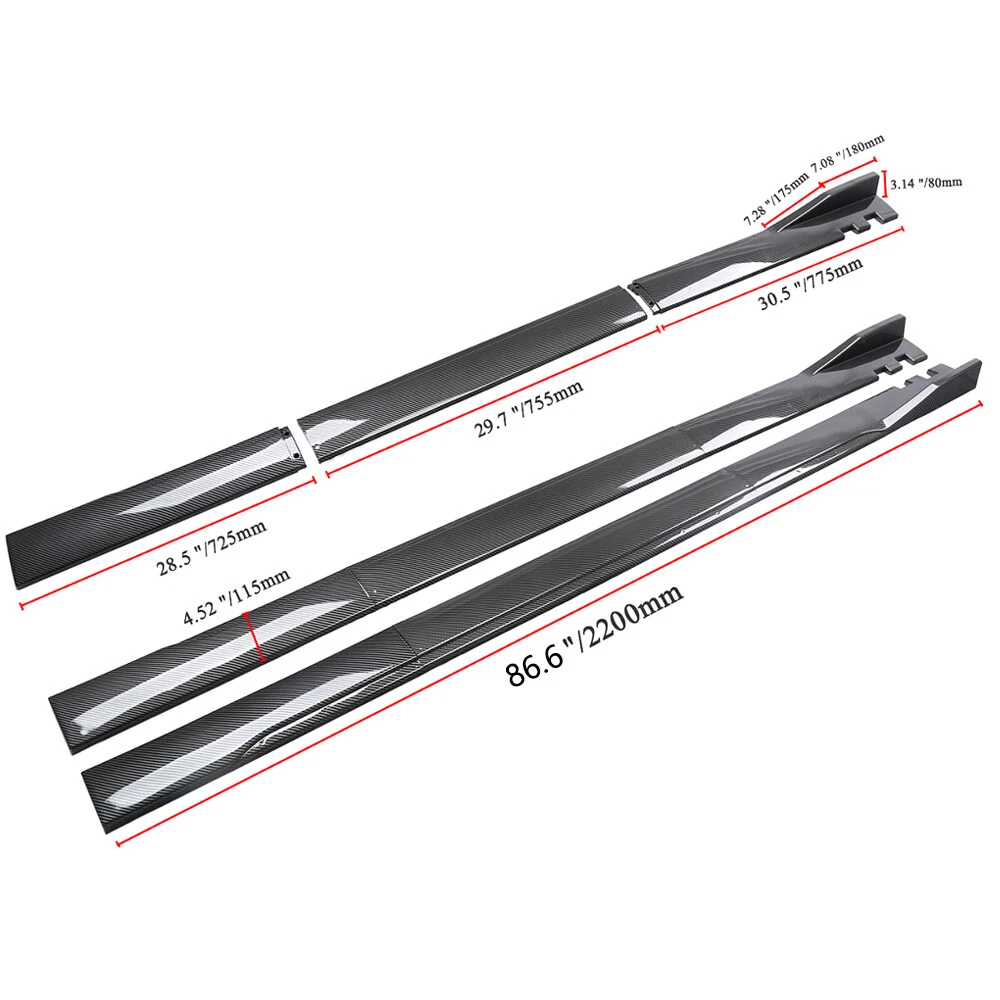 Superseded Part Number: Chin-Diffuser-Front-Bumper-Splitter Placement on Vehicle: Front, Left, Right Color: Carbon Fiber Look Attachment Method: Bolts,Rivets,Screws Surface Finish: Glossy Manufacturer Part Number: Does Not Apply Side Skirt Splitter Length: 86.6 in Feature: Adjustable Angle,Universal Fit, Double layer Number of Pieces: 14 Type: Front Bumper Lip Body Kit Spoiler & Side Skirt Package Included 2: Rear lip+Strut rods Package Included: Front Bumper Lip + Side Skirt Splitter Material: ABS Bumper Lip Length: 75 in Brand: Unbranded Fitment Type: Performance/Custom