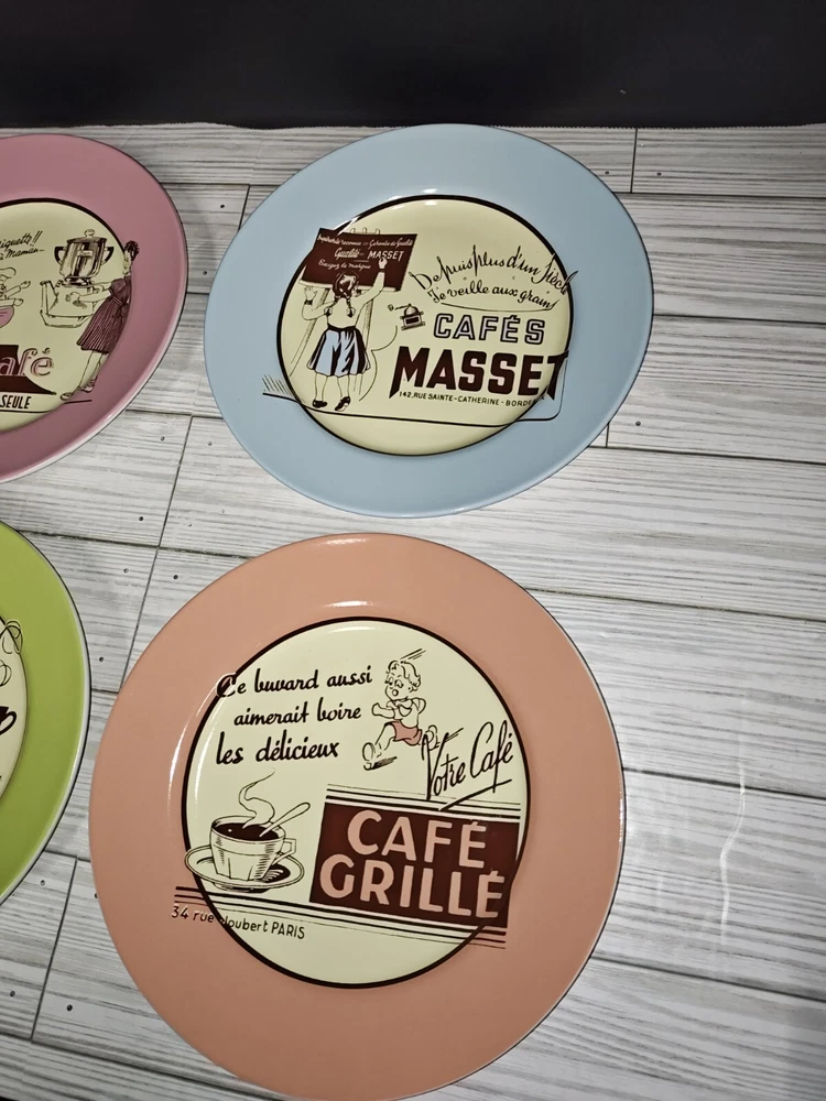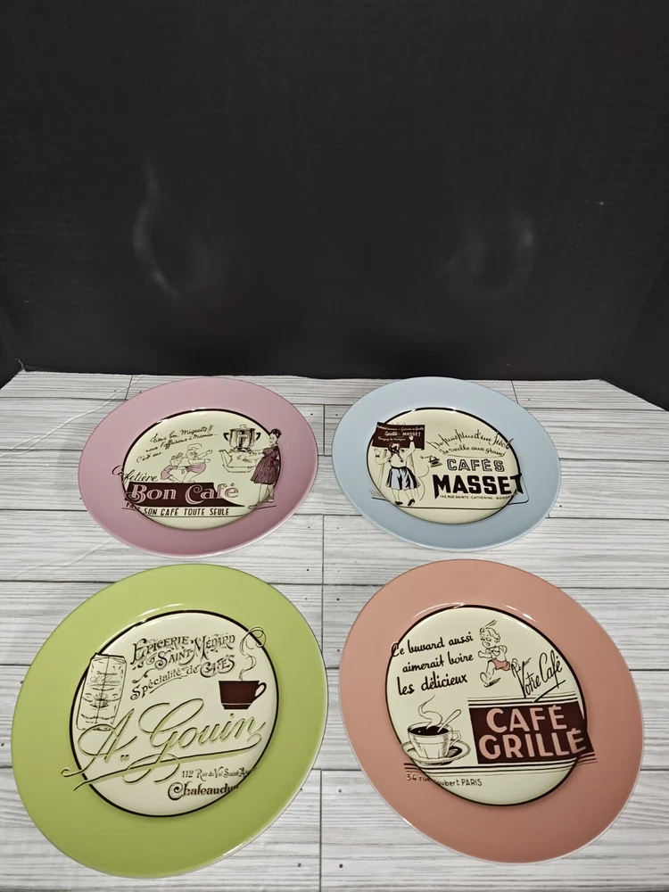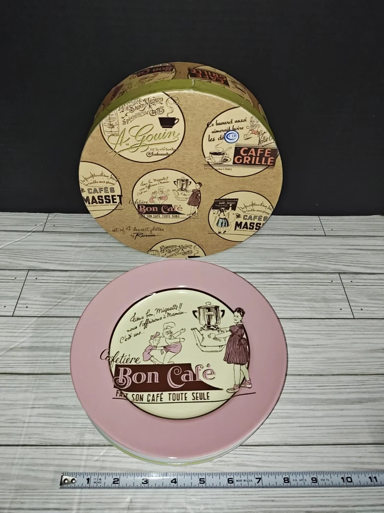Cafe Culture Rosanna French Cafe Bistro Four Piece Desert Plate Set Retro Style