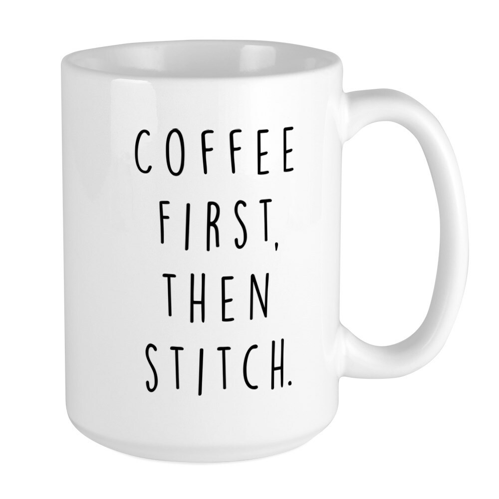 CafePress Coffee First Then Stitch Large Mug (186679970)