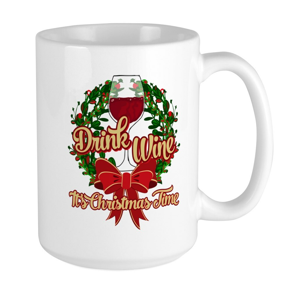 CafePress Drink Wine It's Christmas Large Mug (200516112)