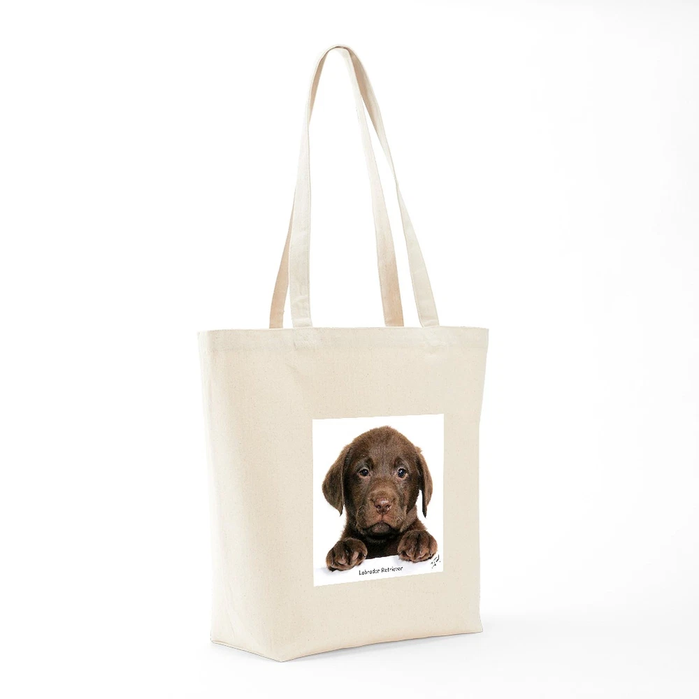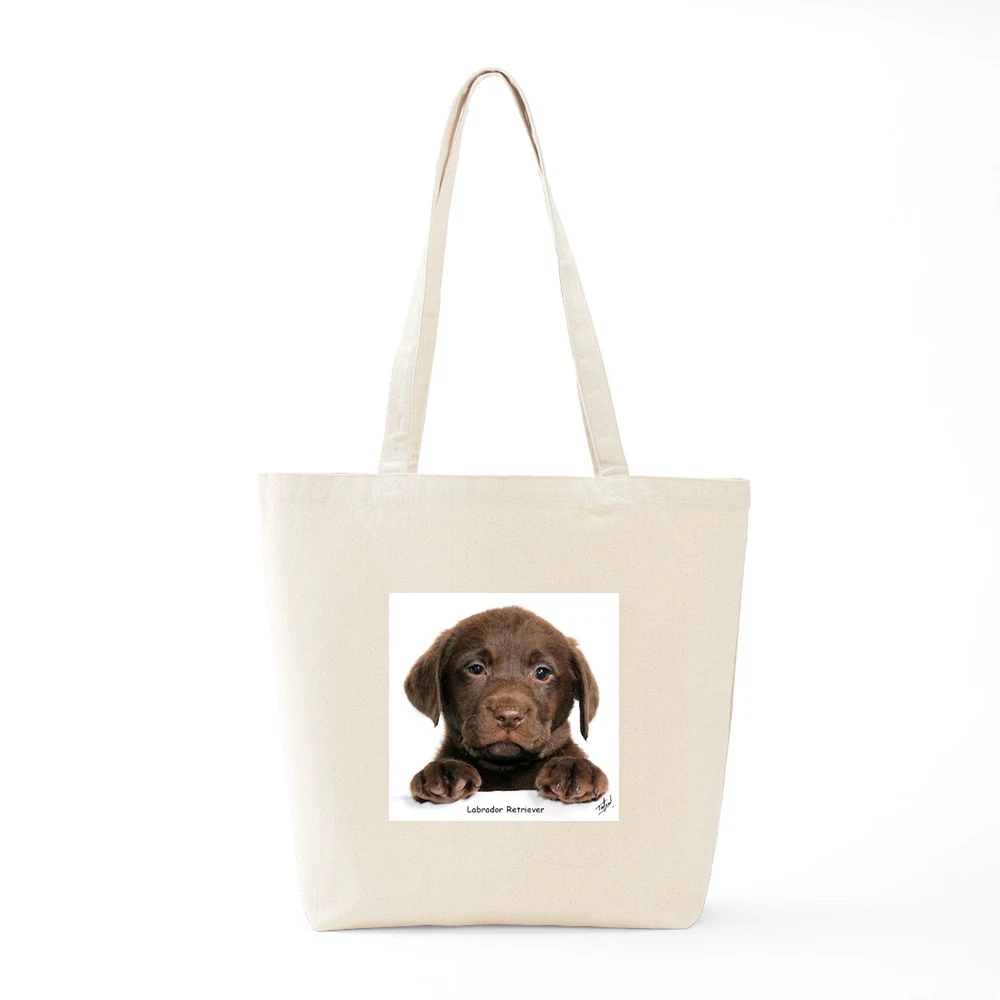Chocolate Labrador Retriever Puppy 9Y270D 050 Tote CafePress brings your passions to life with the perfect item for every occasion. With thousands of designs to choose from, you are certain to find the unique item you've been seeking. Travel in style with this cloth tote bag, professionally printed with your favorite design. These quality natural canvas hand bags are durable, professionally printed, and will satisfy all your reusable shopping bag needs. Also perfect as a beach tote, grocery bag, or book bag, these bags make great gifts for teachers or students, or treat yourself! And with CafePress, your satisfaction is always our promise...buy with confidence, as we offer easy returns and exchanges and a 100% money back guarantee. Small tote measures 15" x 15 x 3" with 26.5" handles. Medium tote measures 15" x 18" x 6" with 22" handles. Each tote size features reinforced handles, and our medium tote includes full side and bottom support gussets for strength and durability. Make this shopping tote your new favorite grocery bag, library tote, or beach tote. These bags are also great gifts for him or her, young or old, for any occasion. Our tote bag designs are professionally printed, so your unique design will look great and make someone smile with the funny, cute, vintage, or expressive artwork. Machine wash cold inside out with like colors and tumble dry low for easy and convenient care. IMPORTED. We offer 100% money back guarantee, so you can buy with confidence. Your satisfaction is our promise, and returns/exchanges are made easy.