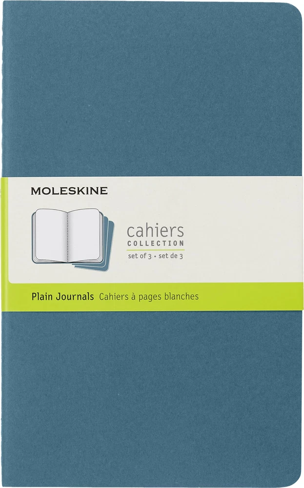 Cahier Journal, Large, Plain, Brisk Blue (8.25 x 5) Cahier Journals are lightweight, flexible paper companions for everyday notes and ideas. They come in sets of 3, making them ideal for keeping specific projects and plans separate. Visible Singer stitching and customizable raw cardboard covers add a handcrafted feel, while 16 detachable pages at the back are ideal for when you need to share your thoughts. ?cardboard cover ?rounded corners ?visible stitching on the spine ?flap with space for collecting loose notes ?ivory-colored 70 g/m² acid-free paper ?last 16 sheets detachable ?packed in sets of 3 S.r.l. creates and sells FSC®-certified products CAHIER NOTEBOOK: cahier notebooks are perfect notebooks for writing journals, bullet journals, travel journals, a daily diary, drawing & sketch journals, cooking & gardening journals, reading journals, note taking & school projects. DURABLE COVER & STORAGE FOLDER: Hold writing projects & notes in your cahier notebook with a flexible, cardboard cover & inners storage folders. Includes detachable pages & creamy, thick pages that are perfect for writing with fountain pens. GIFT QUALITY NOTEBOOKS: planners, journals & notebooks come in hardcover, softcover, lined, unlined & multi-colors like red, blue, black, pink & green. The binding & cover are a durable finish, designed for daily journaling, writing & sketching. DELUXE QUALITY PAGES: 's creamy, thick paper pages in a hardcover notebook, softcover notebook, Cahier journal, or planner are perfectly textured for writing with a ballpoint pen, fountain pen, marker or pencil. IS LOVED FOR A REASON: Writers, students, artists, professionals & travelers love notebooks & planners. From lined to unlined, dotted to graph paper there's a notebook for your needs. Try & you'll understand the passion.