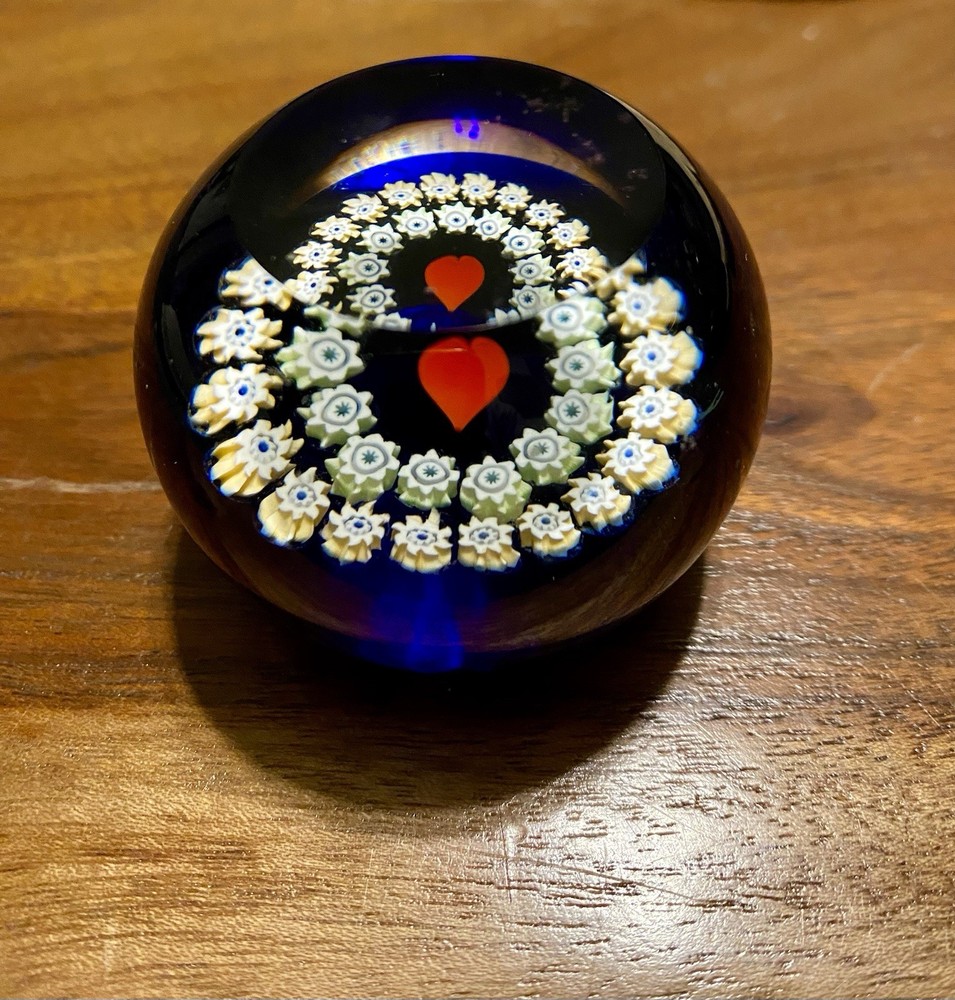 Caithness Miniature Heart Art Glass Paperweight Millefiori Scotland