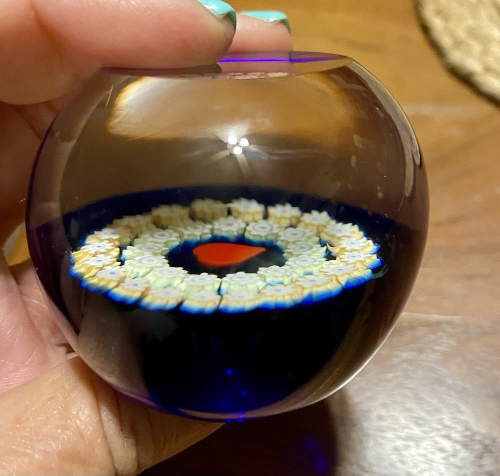 Vintage: Yes Production Technique: Millefiori Origin: Scotland Finish: Glossy Original/Licensed Reproduction: Original Type: Paperweight Era: Late 20th Century (1970-1999) Handmade: Yes Color: Multicolored Country of Origin: United Kingdom Backstamp: Incised Antique: No Brand: Caithness Production Style: Art Glass Material: Glass