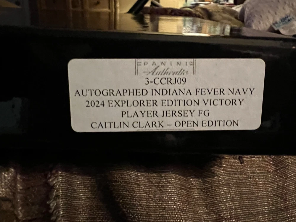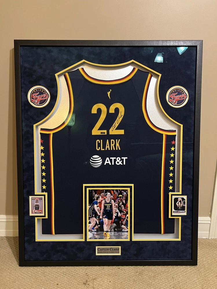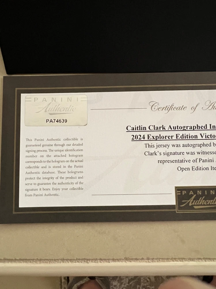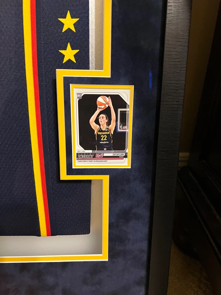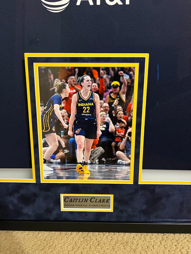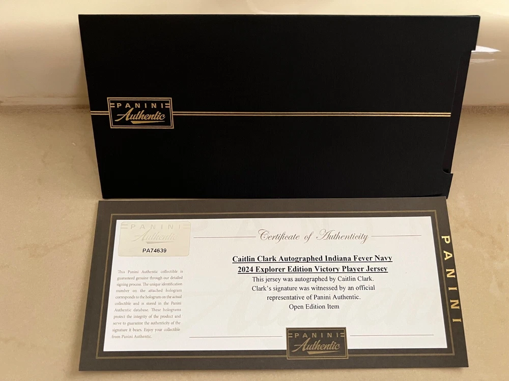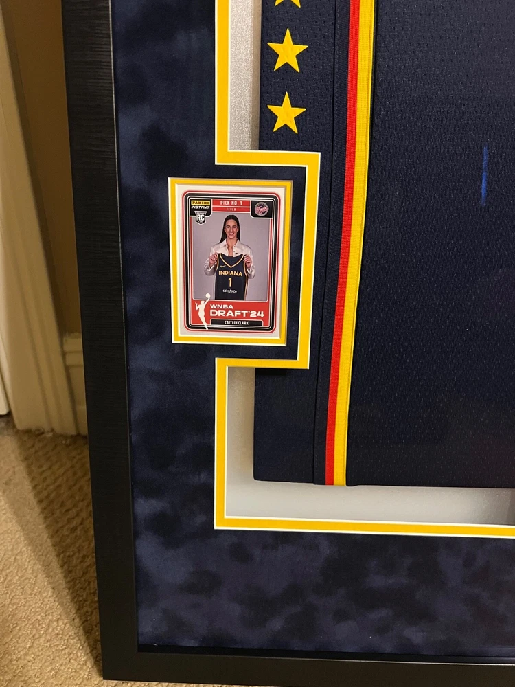 This autographed Indiana Fever jersey by Caitlin Clark is a must-have for any basketball fan. Featuring the iconic Nike brand and her name on the back, this jersey is perfect for showing your support for the team. Clark is a standout player in the Women's National Basketball Association (WNBA) and this jersey is a limited edition release from Panini. Made for the 2024 Explorer Edition, this navy jersey is a stylish addition to any collection. Whether you're a fan of the Indiana Fever or just a lover of basketball, this jersey is a great way to show your support for the sport. Add it to your collection today! I had this jersey custom framed with 2 rookie cards, small photo of Caitlin Clark, 2 patches, name plate and upgraded to museum glass. The museum glass protects from UV rays, cuts 85% of the glare and makes the glass more durable. This jersey also comes with a COA from Panini and it has a matching hologram on the jersey and the COA. I will pay for shipping and will insure for the full amount. I take PayPal only and will only ship to the lower 48 states. IF YOU HAVE ANY QUESTIONS OR NEED MORE PHOTOS LET ME KNOW. Thanks for looking.