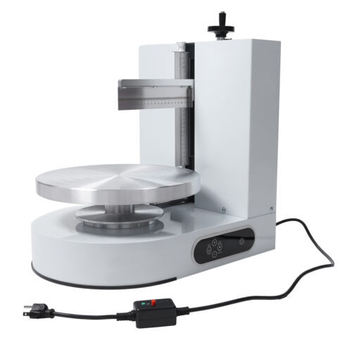 Package Included 1* Cake Decorating Machine 1* English Manual Cake Cream Spreading Coating Smearing Machine Automatic Cake Wiping Machine Specifications Material: Iron, Aluminum Alloy, Stainless Steel Process: Plastic Spraying Color: White Style: Modern Motor Type: Pure Copper Motor Mount Type: Tabletop Assembly Required: Yes Voltage: 110-220v Power: 200w Rotation Speed: 60-320rpm Noise: 60db Display Type: Lcd Plug Type: Us Standard Power Source: Corded Electric Leakage Protector Model: Ym-16 Prcd Voltage: 125v~15a L△N: 10ma T<0.1s Max. Horizontal Knife Lifting Height: 20cm/7.9in Vertical Knife Travel Distance: About 17.5cm/6.9in (from the Edge of the Turntable to the Center) Applicable Cake Size: 10-30.5cm/4-12in Gross Weight: 23kg/50.7lbs Net Weight: 21kg/46.3lbs Turnable Diamater: 35cm/13.78in Overall Product Size(L*H): 42*50cm/16.54*19.69in Top Platform Size: 36.5*11cm/14.37*4.33in Package Size: 56*55*43cm/22*21.65*16.93in Package Included 1* Cake Decorating Machine 1* English Manual Description Are You Tired of Having to Manually Spread the Cream During the Process of Cake Making and Are Annoyed by the Fact That the Spread Is Not Smooth Enough? Our Cake-decorating Machine Is an Ideal Solution. with 200w High Power, Max. 320rpm High Rotation Speed Pure Copper Motor As Well As a Sharp Knife, It Can Smooth the Cream Quickly and save Your Time and Energy. Its Adjustable Design and User-friendly Touch Panel Allow You to Operate It Easily, and Even Novices Can Get Started Directly. Key Features High-quality Material: the Product Is Mainly Made of Iron, Stainless Steel, and Aluminum Alloy After the Plastic Spraying Process, Which Is Sturdy, Durable, and Corrosion-resistant . Efficient Working: Equipped with a Pure Copper Motor and Sharp Large Knives, It Delivers Excellent Performance with High Power (200w) and High Rotation Speed (Max. 320rpm), so You Can Easily Smooth the Cream on the Cake Blank in a Short Time, Saving Time and Effort. Adjustable Design: the Rotation Direction Can Be Switched Clockwise or Counterclockwise. the Horizontal Knife Can Be Raised to a Maximum of 7.9in, and the Vertical Knife Can Be Pulled from the Edge of the Turntable to the Middle of the Turntable with a Distance of About 6.9in, Making the Product Suitable for 4-12 Inch Cakes. Easy to Operate: with a High-definition Lcd Display and Intuitive Touch Screen Buttons and Knife Handle, You Can Freely Adjust the Turntable Forward and Reverse, Rotation Speed (60-320rpm), Hand and Foot Adjustment, and Horizontal Knife Height. Even Inexperienced People Can Make It Easily. High Accuracy: the Precise Scales on the Knives and the Turntable with Several Circles of Different Diameters Allow You to Grasp the Size More Accurately. Beautiful Appearance: the Sleek White Finish Adds a Touch of Style and Liveliness to the Product and Energizes Your Cake-making Efforts. Effortless Cleaning: the Smooth Surface and Simple Structure Make Cleaning More Simple. You Can Just Wipe It with a Damp Towel. High Safety: Leakage Protection Plug Can Quickly Cut off the Power, Making Your Work More Safe. a Wide Voltage (110-220v) Design Can Effectively Ensure Safety, so You Can Use It with Confidence. Protective Package: to Prevent the Product from Being Damaged During Transportation, We Packed It with a Bubble Bag to Protect Your Products to the Maximum Extent Possible. Guaranteed Customer Service: We Aim to Provide Quality Products and Services. If You Have Any Problems, Please Feel Free to Contact Us. We Will Reply and Solve the Problem for You As Soon As Possible. Details Thickened Base: It Can Keep the Machine Stable While Working, Minimizing the Risk of Falling off the Table or Tipping over. Vertical Knife Handle: It Makes It Easier to Pull out the Vertical Knife. Application It's Suitable for Cake Shops, Dessert Shops, Food Shops, Households, Etc. How to Operate: 1. First, Put the Cake Blank (Not Included) in the Center of the Turntable. 2. Adjust the Distance Between the Horizontal Knife and the Vertical Knife. 3. Turn on the Power and Adjust the Rotation Speed of the Turntable (60-80rpm). Use a Decorative Bag to Apply Cream on the Side from Bottom to Top; Apply Evenly from the Center to the Outside. 4. Clean the Cream on the Horizontal and the Vertical Knives. 5. Adjust the Pressing Force of the Horizontal Knife When Water Chestnut Appears. 6. Move the Horizontal and Vertical Knives Away and Complete Troweling the Cake Blank. Notes Please Read the User Manual and Labels Carefully, Paying Particular Attention to Safety Precautions. Please Do Not Touch the Turntable with Your Hands While the Machine Is Running to Avoid Scratches. Please Allow the Slight Color Difference Caused by the Shooting Light and 1-3cm Error Due to Manual Measurement, and Make Sure You Do Not Mind Before You Order. Payment Delivery details Terms of sales About us Contact us Payment We accept ebay payment 。 Fees such as import duties, taxes are not included in the item price or shipping costs. These charges are the buyer's responsibility. Delivery details Shipping: 2-9 working days to: USA Terms of sales We maintain high standards of excellence and strive for hundred percent customer satisfaction. Feedback is very important to us. We hope that you contact us immediately before you give neutral or negative feedback, so that we can address your concerns. It is impossible to address issues if we do not know about them! About us Your satis faction is our ultimate goal. We work hard to earn your trust and future business. Our certified technicians have tested each item before shipping. The unit comes with 1 year limited warranty on all manufacturing defects. a) If you receive a defective item, you may return it or ask for a discount. Please contact us within 14 days after you receive the package. b) What you returned must be intact and in its original packaging as re? u. Customer is responsible for shipping costs of the returned item. c) We will cover the cost of ship