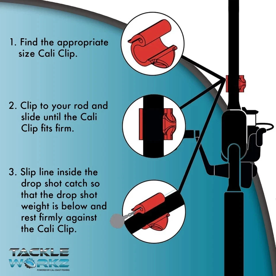 100% Money Back Guarantee if you are not satisfied with your purchase! ___________________ Description: As any angler knows, keeping the line on your rod from tangling can be a hassle. That is why we created the Cali Clip! So you can easily secure your drop shot weight and hook. It's perfect for storage or when you're traveling to your favorite fishing spot. THREE SIZES THAT FITS MOST RODS : BLACK LARGE - RED MEDIUM - YELLOW SMALL We designed the Cali Clip to securely grip onto your fishing rod, ensuring your drop weight and hook will stay firmly in place. When the clip keeper is properly attached it won't spin or slide down the rod. PERFECT FOR JIGS OR LURES: The Cali Clip's hook keeper can easily hold swim jigs, Texas rigs and other lures securely to your rod. You'll never again have to untangle your line from hooks and lures before fishing. LIGHTWEIGHT DURABLE CONSTRUCTION: Our drop shot weight holder and hook keeper is made from durable molded plastic that will give you continued, reliable use. Its lightweight design will not affect your rod's weight and feel. CAL COAST FISHING: Our company specializes in providing products that make fishing more enjoyable. Our well-made accessories are designed by anglers that know what fishermen need to be successful. ________________________ 100% Money Back Guarantee: We offer 30 Day Money Back Guarantee from the day you purchased if you’re not satisfied with your product. If you have any questions about our products, please contact us as soon as possible. Customer satisfaction is our absolute priority. Shipping: We are always working hard to ensure your package arrives as soon as possible. Please understand that some factors like weather, high postal traffic, and the performance of shipping companies are outside of our control. We offer free shipping to the lower 48 states and ship within 3 business days of payment, usually sooner. We do not accept P.O. Boxes. Please provide a physical address. You will be notified via eBay messages as soon as your items ship. Delivery: We will ship out the item in 2-3 working day after receiving the payment. Usually the delivery takes 2-5 business days. If you don't receive the items after 10 days, please feel free to contact us. You will get a replacement or a full refund. Please DO NOT open a return request or leave negative feedback without asking for help . Returns (Get Free Return Label): We offer a 30-Day Return Policy on defective/wrong items or items which you are not completely satisfied with. You have the option for a full-refund or an exchange of the item. No need to buy eBay return label. Contact us via eBay messages and get free return label. Returned items must be in all of the original packaging and include all of the original accessories or items that came with it. The item and package should be in original condition. Contact Us: Any queries or issues incurred, please feel free to contact us via eBay message, we will get back to you within 24 hours. Please DO NOT open a return request or leave negative feedback without asking for help. Feedback: Your feedback is very important to us. After you get your package and you are satisfied with our service, please leave us positive feedback. We are highly appreciated for your POSITIVE feedback and 5 stars. Enjoy shopping.