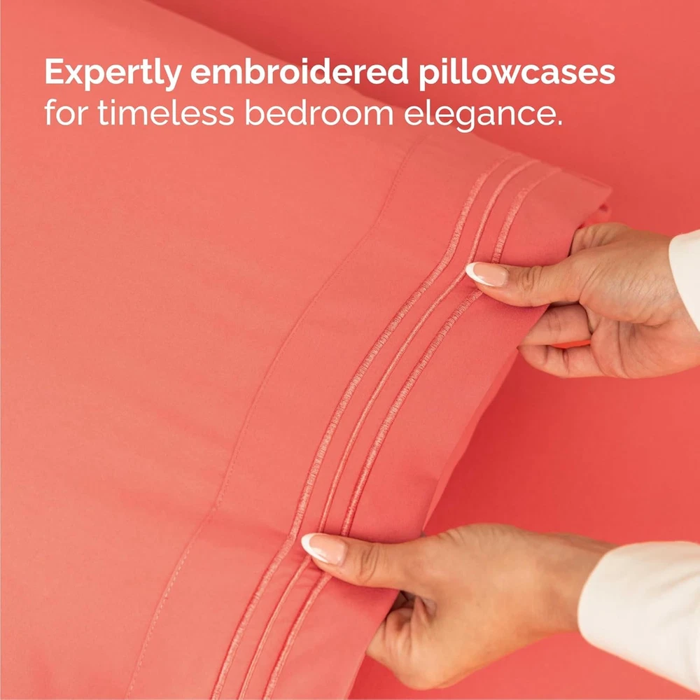 About this item 4 PIECE BED SHEET SET: 2 pillow cases and a flat sheet and fitted sheet. Flat Sheet (108" x 102") Fitted Sheet (84" x 72”) 2 Pillow Cases (40”x 20”) - a comfy upgrade for Adults, Kids, Teens, Boys & Girls. DEEP POCKETS/ EASY FIT: They fit mattresses up to around 16 inches deep. If your mattress is smaller than 16 inches it will fit just fine. A lot of mattresses are pretty big these days and we feel this is a good universal size that fits most mattresses. FEEL THE DIFFERENCE: If you're looking for very soft sheets, you have found them! They're breathable, cool, and super silky soft. The comfort of these sheets will have you coming back! They're softer than Egyptian cotton and organic cotton sheets! Best for any room in your house - bedroom, guest room, kids' room, RV, vacation home. Great sheet and pillowcase sets for kids, boys, girls, teens, men, and women. HIGHEST QUALITY BRUSHED MICROFIBER: A lighter difference. A softer, finer touch. These are made of the highest quality double brushed microfiber yarns. The virtually weightless wonder of sheets will have you coming back for more. Linger in your dreams. GREAT SHEETS FOR THE PRICE – Perfect for Adults, Kids, Teens, Boys & Girls! These are some of the softest and most affordable sheets you’ll find. Enjoy unbeatable bang for your buck on comfort and softness—unlike many pricey fabrics, CGK Bed Sheets deliver luxury feel at a reasonable cost.