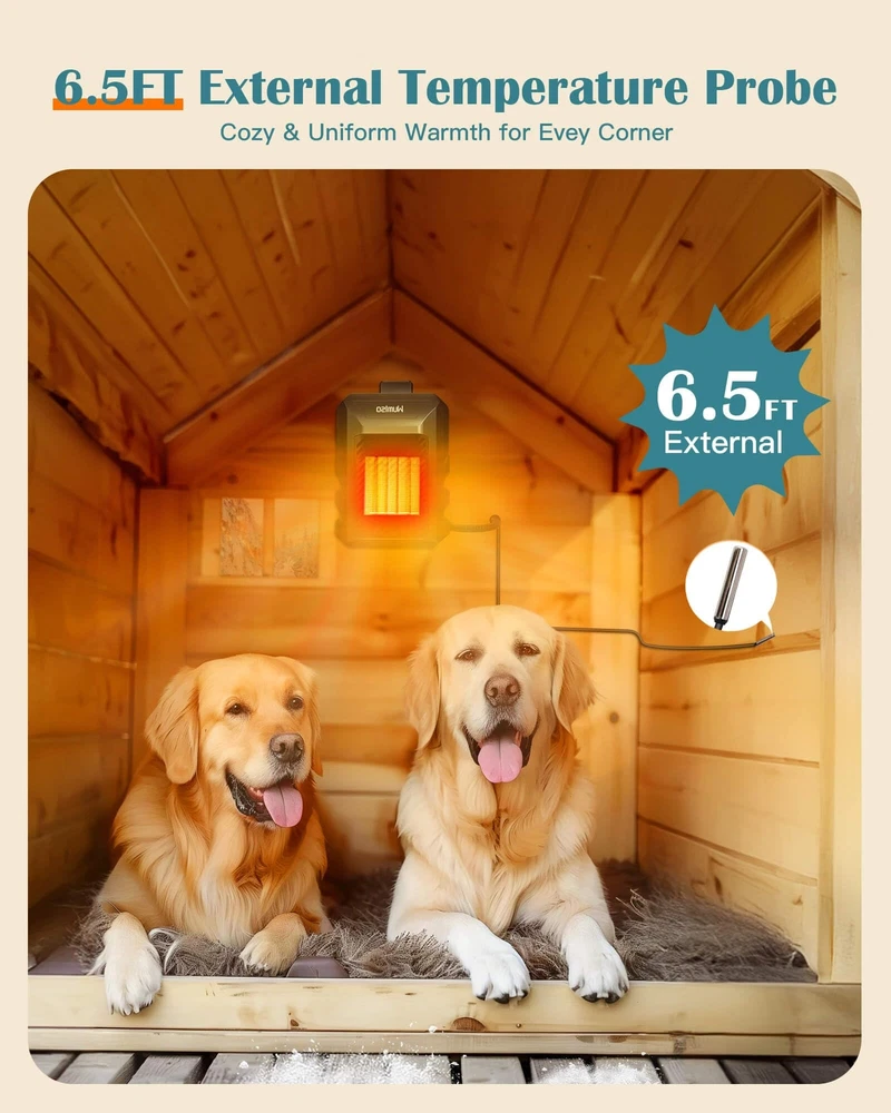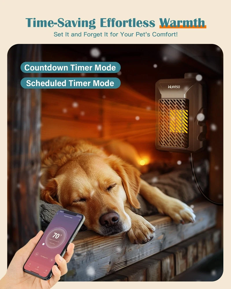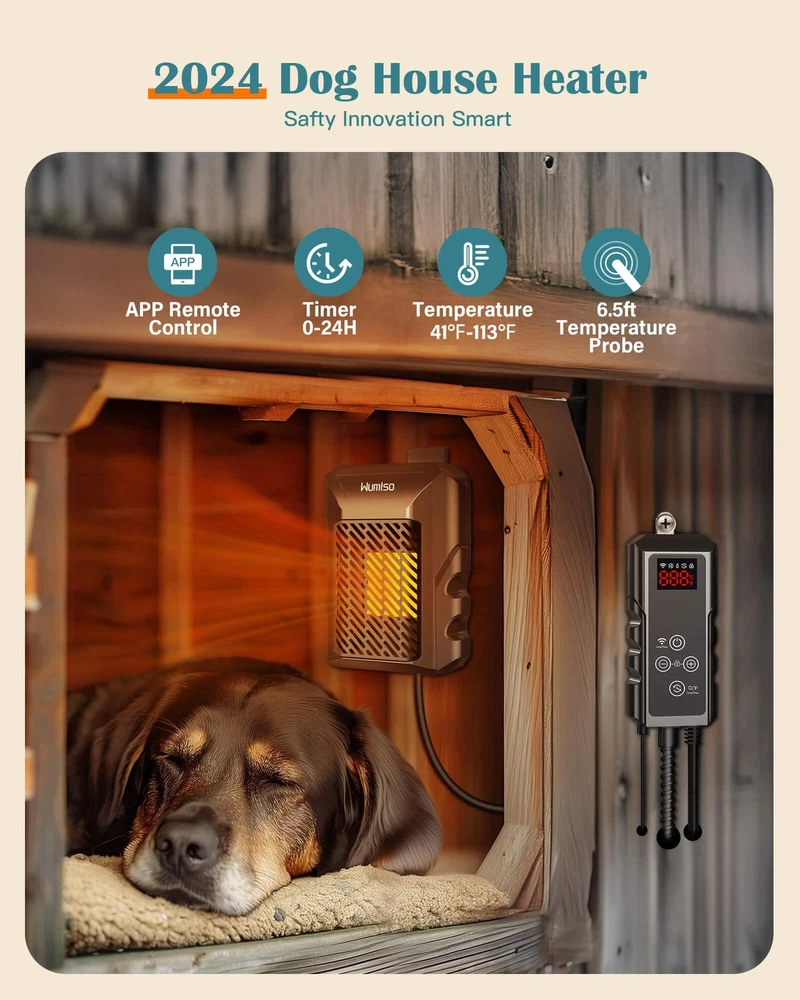 Dog House Heater, Dog House Heater with Thermostat APP WIFI Control, 500W Dog Ho App Remote Control: Our dog house heater with a thermostat allows you to remotely monitor the temperature inside the dog house anytime, anywhere, through the app, which is very convenient. In the cold winter, you no longer need to bend down to adjust the temperature outside the doghouse. You can easily take care of your pets and ensure they stay warm and healthy. You can also share the account with your family to jointly monitor and adjust the temperature of the dog house 500-Watt Rapid Heating: The 500-watt dog heater for outdoor dog houses heats up faster and performs better, covering a space of 150 cubic feet, far exceeding the 50-75 cubic feet of other products. Dog house heater with wifi control is an ideal choice for cold climate conditions, effectively preventing temperature drops and ensuring stable heating even in extreme weather. Compared to the common 300-watt pet heaters, it heats up faster and distributes heat more evenly Precise Temperature Control: Our newly upgraded dog house heater comes with a 6.5-foot long external temperature probe for precise temperature monitoring and even heating. Unlike traditional internal sensors, it directly senses the temperature of the dog house, ensuring accurate control to prevent overheating or undercooling, as well as preventing uneven temperature distribution within the dog house space. It provides your pets with a comfortable warmth on cold winter days Multipurpose Pet Heater: The most comfortable temperature for dogs is around 70°F; when the temperature drops below 50°F, pets will start to feel uncomfortable and cold. Our dog heater and ac combo has an adjustable temperature range from 41°F to 113°F, suitable not only for outdoor dog houses but also for chicken coops, rabbit cages, pet pigs, and barn cats, keeping them warm in harsh weather conditions. It is especially suitable for baby dogs, newborn pets, and senior dogs Energy Saving and Cost-Effective: The Wumlso pet house heater has a lifespan of over 10 years. Once the desired temperature is reached, it stops heating, and it will start heating again when the temperature drops 2 degrees Celsius below the set value. This smart ECO mode maximizes energy efficiency and reduces electricity bills, ensuring that your pets always enjoy a comfortable and warm environment Specification: Temperature Setting: 41℉-113℉| Time Setting: 0-24H | Power: 500W | Voltage:110-120V | 60Hz Shipping We offer FREE shipping on all orders! We ship within Three business days of payment, usually sooner. We use a selection of shipping services such as UPS, FedEx, USPS etc. We only ship to the lower 48 states, no APO/FPO addresses or PO Boxes allowed. Local pickups and combined shipping options are not provided at this time. Return You can return a product for up to 30 days from the date you purchased it. Any product you return must be in the same condition you received it and in the original packaging. Please keep the receipt. Payment We accept payment by any of the following methods: PayPal Please pay as soon as possible after winning an auction, as that will allow us to post your item to you sooner! Feedback Customer satisfaction is very important to us. If you have any problem with your order, please contact us and we will do our best to make you satisfied. Contact Us If you have any queries, please contact us via ebay. We usually respond within 24 hours on weekdays. Please visit our eBay store to check out other items for sale! Thank you for shopping at our store.