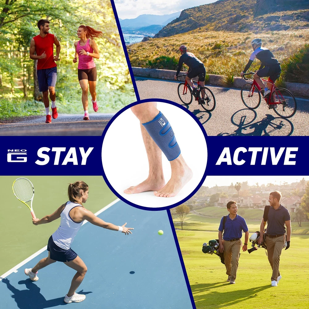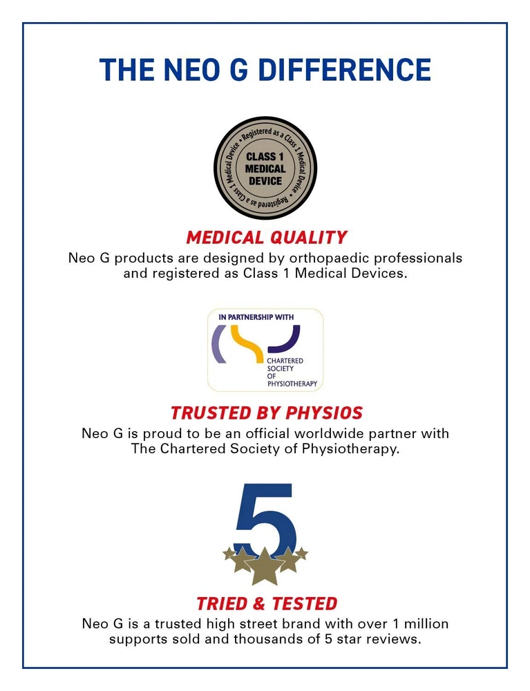 The Neo G Calf/Shin Splint Support with heat therapy offers dynamic compression and support to the entire calf with three adjustable straps allowing individual fit and comfort. The support is designed to help cushion and protect the anterior and posterior muscles of the calf to help with pain from strains, sprains and shin splints caused by occupational or sporting activities. The durable, flexible, heat therapeutic neoprene helps warm stiff, aching and tired muscles. Fits up to 46cm / 18In. Measure calf circumference 5-6 Inches below back of knee for maximum size. LOOKING FOR A CALF MUSCLE PAIN RELIEF? Neo G shin braces are medically engineered to help relieve pain associated with strains, sprains, shin splint. Aid recovery from calf injuries, leg cramps, provide relief for shin splints PERFECT SHIN SPLINT BRACE FOR ACTIVE LIFESTYLES: Premium quality neoprene adjustable shin splint supports the entire calf for ultimate comfort, fit and support. Suitable for everyday activities and sports: leg calf support for running, cycling, football, walking & more. FULLY ADJUSTABLE COMPRESSION CALF SUPPORT system ensures optimum fit and blood flow safety. Easy to adjust to your desired level of compression. Torn calf brace helps cushion and protect the anterior and posterior muscles of the calf. Shin brace provides calf, shin splint relief. EASY TO PUT ON & COMFORTABLE: very easy to put on and take off without removing shoes. Three adjustable straps allow individual fit and comfort. Universal size, unisex, fits the left or right leg. Durable, heat therapeutic NEOPRENE helps warm stiff, aching and tired muscles. MEDICAL GRADE: Registered internationally as a Class 1 Medical Device. Made to the highest quality and compliance standards by Neo G – millions of supports sold worldwide, trusted by physios. Official worldwide Partner of the Chartered Society of Physiotherapy