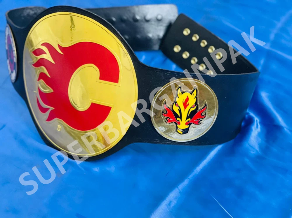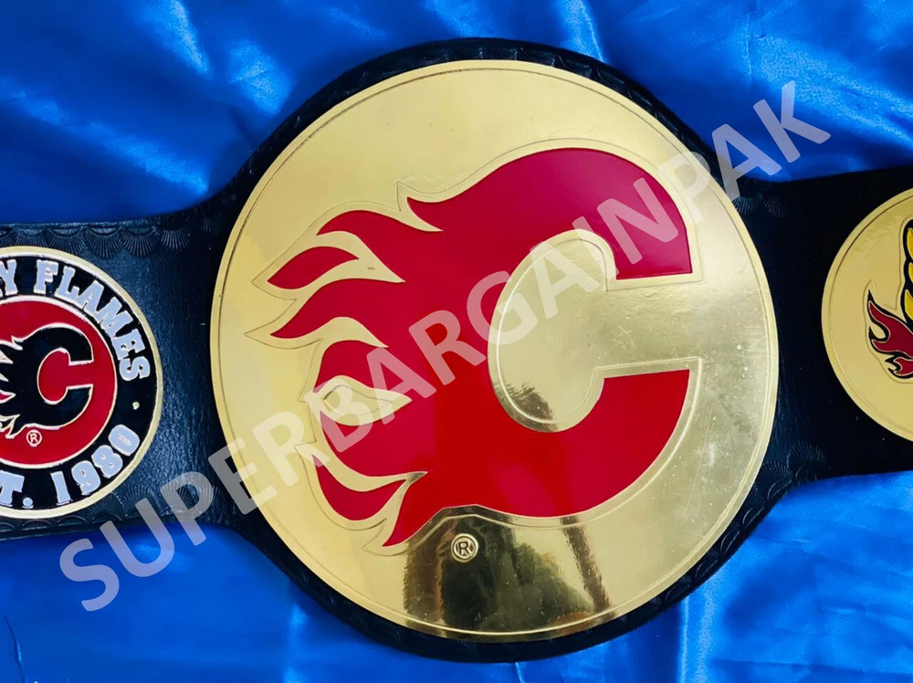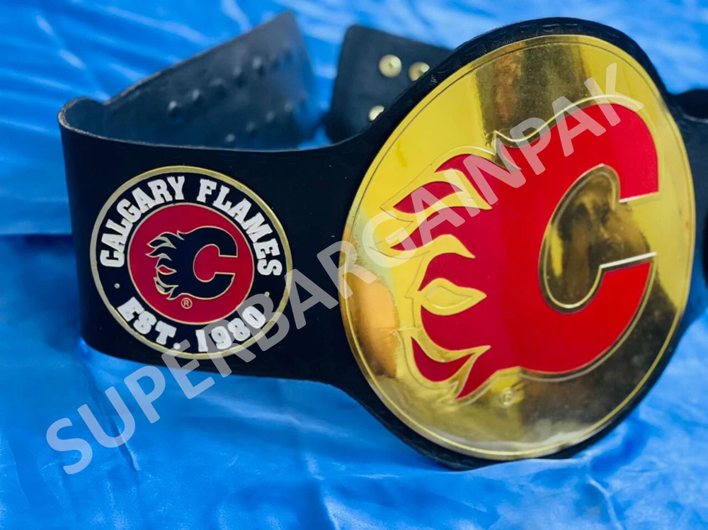 Welcome to our shop ------------------------------------------- We are specialist in manufacturing handmade products:: Our wide range of products include: >>>>Championship Belts WWE | WWF | AEW | UFC | WBC | WCW MINI SIZE ALSO AVAILAVLE FOR CHILD Product Description *** Calgary Flames Ice Hockey Championship Belt Adult size *** Plate Metal: Brass (Zinc available on request with additional cost) Strap: 100% Leather Largest Waist Size: Fits upto 46'' Belt Length: ~50" Weight: 6.17 lbs | 2.81 Kg Plate Thickness: 2mm (4mm Version available on demand with additional cost) ::The belt is well crafted and manufactured to meet the quality demands of fans:: Get your hands on this marvelous piece now! Note: If you need further details kindly inbox us, we will try to be as responsive as possible. ------------------------------------------- Return Policy: Generally we don't have much complains on our products and we make sure to 100% satisfy our clients. We send the product in well Bubble Wrapped packaging so there is highly unlike chance of getting damaged item. In case there is a damage, we will try to give partial refund or you can ask for full refund within 30 days after returning the belt to origin. NOTE: 1. If you have placed the order by mistake or you have purchased a wrong item then we are not going to refund that. 2. Buyer will pay the shipping fee of returning the belt. ------------------------------------------- Happy Shopping! :)