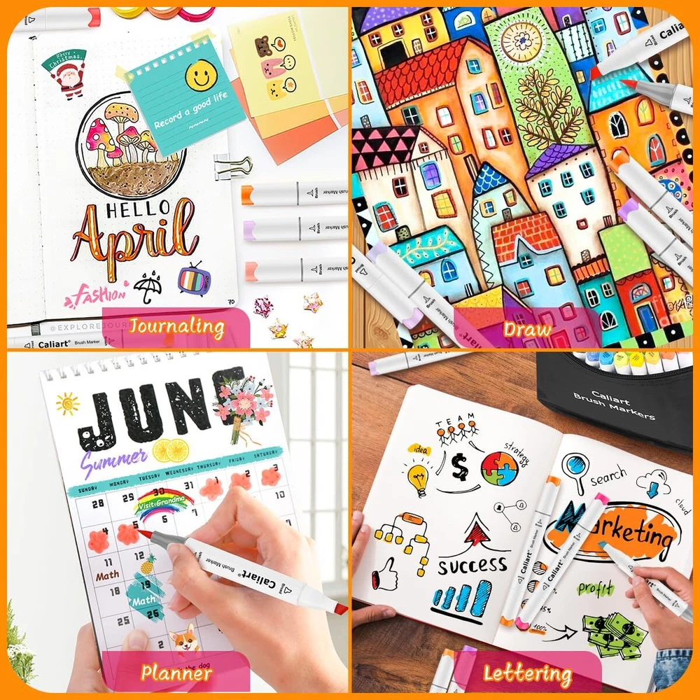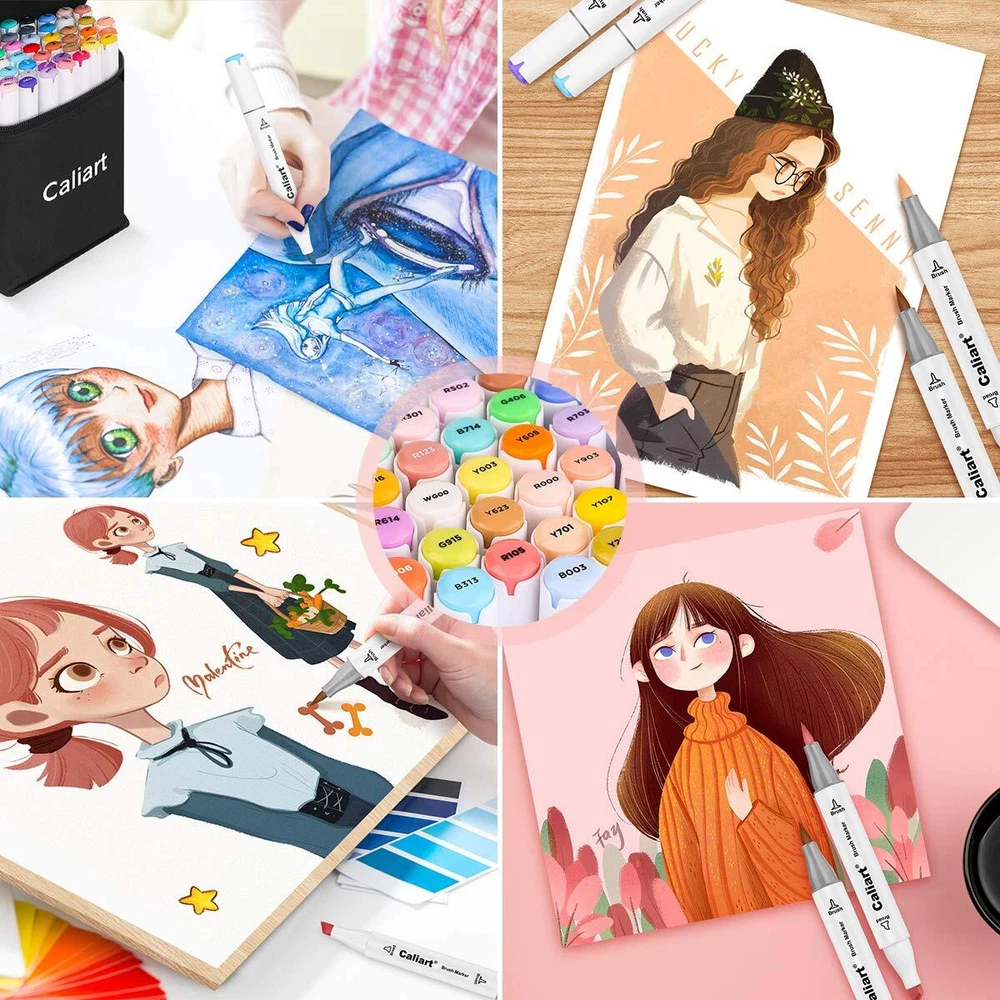 Caliart Alcohol Brush Markers, 51 Colors Dual Tip Artist Brush & Chisel Tip S...
