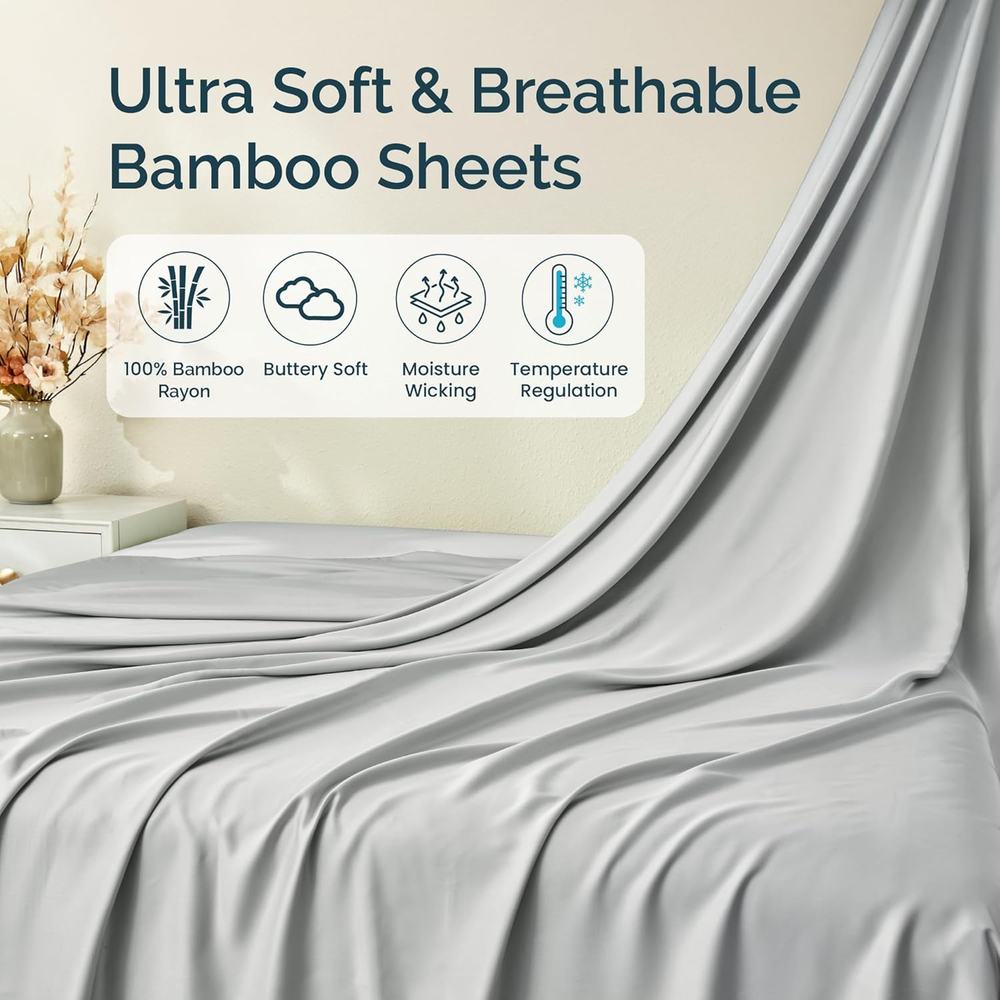$ 58.61Luxury Cooling Rayon Bamboo Queen Sheets Set with Deep Pocket Fitted