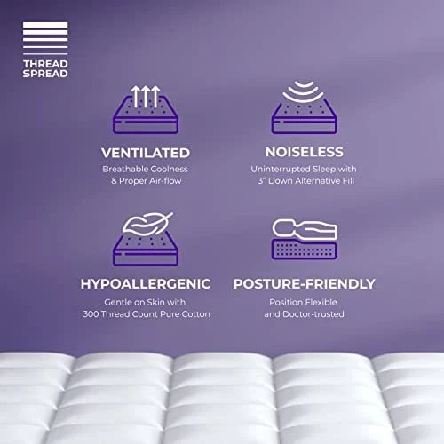 Return Policy Fast Delivery Trusted seller California King Cooling Mattress Topper, Pillow-Top Optimum Thickness, Soft 100% Cotton Fabric, Breathable & Plush Quilted Down-Like Fill, Snug Deep Pocket fit Product Description Mattress Topper For Optimum Thickness, Support, & Comfort: Whether your bed room mattress is too firm or you need pillow top softness, our 300 TC 100% cotton cal king mattress topper can help you. Neither too thick nor thin, our plush california king mattress topper alleviates pressure points i.e. neck & back pain when you sleep. The baffle box construction keeps feathers from shifting around. It’s soft, fluffy, and plush—making you feel that you’re sleeping on a five-star hotel bed. Temperature Smart + Adds A Layer Of Protection: Our mattress topper california king size disperses body heat and maintains an optimal temperature. It keeps you cool and super breathable, unlike memory foam, gel, and deluxe mattress pads. Great for hot sleepers who suffer from night sweats. It’s also a great mattress protector and repels water, stains, and spills. The liquid doesn’t seep through and keeps the mattress fresh and brand new. Extra Deep Pockets & Snug Elastic For A Perfect Fit: The top layer of our matress cover is made from soft-quilted, high-quality 100% cotton, and the bottom layer has a down-alternative filling for cushion padding. Made with extra deep pockets and all-around elastic, our mattress topper california king size stretches wide and far for a perfect fit. The cali king mattress topper measures 72” W x 84” L + 18” deep pocket and can hold up to 8-21 inches matressess easily. Home Care & Wash – Retains Shape Even After 100+ Washes: Other mattress pads become deformed or lumpy after a couple of washes. Our luxury pillowtop cal king size mattress topper retains its shape and bounce even after 100+ washes. It’s machine washable and maintains the fill consistency. Take it out from the vacuum box, place it open for a few hours, let it fluff up to shape, and then use it. Pro tip: Use fitted sheets on the mattress topper to prolong the life of the pad. 60 Nights Free Trial; 5-Year : Our bed toppers california king size are made in a certified facility for defect-free, safe, and non-toxic products. Since our premium topper is made from 100% cotton, it’s natural, skin-friendly, and best for people with sensitive skin. We offer a 60-day free trial and 5-year warranty so that you can buy our bedding products on risk-free. If you have any other issues, you can always reach out to us, and we will resolve them immediately. Shipping Returns Payment Shipping Shipping is FREE to all addresses other than APO/PO boxes in the lower 48 states. All our stock ships from US-based warehouses. Shipped via USPS or UPS (depending on location and package weight) Unless stated otherwise, all orders will ship within 24-72 hours of your payment being processed. Check our feedback to see the great reviews of FAST shipping we offer. Returns Seller does not accept returns Payment We currently accept payment via eBay managed payments only. Once payment is cleared, we will dispatch your shipment within 1-3 business days. Please refer to the "Shipping" tab for more information regarding shipping speed to your destination.