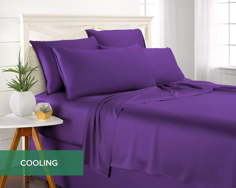 Store New Arrivals Add to Favorite View Feedback Contact California King Sheets by , Genuine 100% Organic Viscose Derived from Bamboo Bed Sheet Set, Soft & Cooling, Double Stitching, Lifetime Quality Promise (California King, Purple) Description Item model number PBS-caliking-purple Style Modern Weave Type Sateen Pattern Solid Country of Origin China Theme luxurious bamboo comfort Cartoon Character Solid Number of Pieces 4 Unit Count 1 Count Product Dimensions 13 x 9.5 x 4 inches Batteries required No Pillowcase Quantity 2 Material Viscose Derived from Bamboo Age Range (Description) Adult Seasons All Is Discontinued By Manufacturer No Included Components 1 Fitted Sheet, 2 King Size Pillowcases, 1 Flat Sheet Closure Type Envelope Item dimensions L x W x H 13 x 9.5 x 4 inches Item Weight 6.54 pounds Fitted Sheet Pocket Depth 16 Inches Special Feature 16 Inch Deep Pockets, Genuine 100% Organically Grown Viscose Derived from Bamboo, Luxuriously Soft & Cooling, Lifetime Quality Promise Guarantee, Envelope Closure Pillowcases Color Purple Thread Count 300 Fabric Type 100% Viscose Derived from Bamboo Product Care Instructions Machine Wash, Low Heat Tumble Dry Size California King 100% Viscose Derived from Bamboo ✔ GENUINE 100% ORGANICALLY GROWN VISCOSE DERIVED FROM BAMBOO - Crafted from the finest quality luxusiously soft 100% Organically Grown Viscose derived from Bamboo, and are OEKO-TEX Standard 100 Certified and tested to be free from over 100 harmful substances, ensuring that it is safe and healthy for your family. Our bed sheets are never blended with other fibers or fabrics unlike most competitors. ✔ COMPLETE 4-PIECE CALIFORNIA KING (72"x84") BED SHEET SET - Includes 1 fitted sheet, 1 flat sheet and 2 envelope-style pillowcases with overlapping closure. The pillowcases and flat sheet feature quality sewn double-stitched seams to ensure long-lasting durability and easy care with cold water washing, while offering a sensuous silky feel that grows luxuriously softer with every wash. ✔ ULTIMATE COOLING SOFTNESS AND BREATHABLE COMFORT - Viscose derived from bamboo fabric is naturally thermo-regulating to keep you cool and relaxed while sleeping and providing all season comfort. The moisture-wicking properties of our resort-grade bedding is perfect for hot sleepers or those with sensitive skin while indulging in the ultimate luxurious softness. ✔ DEEP FITTED POCKETS, 300 THREAD COUNT SATEEN WEAVE - Features fitted sheets that have a fully elasticized border to ensure a snug fit for any mattress up to 16 inches thick. All bedding is made from 300 thread count sateen weave fabric for a softer, smoother and more silky feel than even the highest thread count cotton sheets. 300 thread count is the optimal choice for pilling resistance as higher thread counts mean thinner and weaker fibers. ✔ LIFETIME GUARANTEE - Every bedding purchase is backed by a risk-free Lifetime Guarantee against defects in materials and craftsmanship. Sleep soundly on these soft as silk sheets, knowing that our sheets are made from responsibly sourced materials. Designed in Florida and Imported from China. All fabric has been subjected to rigorous testing standard for flammability (Passed/ASTM F963-A6), heavy metals (Passed/ASTM E1479-16), and phthalates (none detected per CPSC CH C1001-09.3) Product Description Soft & Cooling Soft and cooling to the touch while also being thermo-regulating to keep you cool and trap less body heat while you sleep. 300 thread count sateen weave fabric provides a sensuously silky feel that softens with every wash. Organically Grown All of our bed sheets are crafted from the highest quality 100% organic fabric available and are never blended with other fibers or fabrics. Sleep soundly on these soft as silk sheets, knowing that they are made from responsibly sourced materials. Ultimate Softness Our bed sheets are the perfect choice for those with sensitive skin. The moisture-wicking properties also promotes the dissipation of sweat resulting in a more relaxing and comfortable night of sleep. Durable Double Stitching Our flat sheet and pillowcases features double-stitched seams for enhanced durability to prevent fraying, enabling you to enjoy their softness for many years to come. The pillowcase interior stress points are reinforced with bartack stitching to enhance the strength. 16 inch Deep Pockets Our sheets feature a 16 inch deep pocket fitted sheet with high quality elastic to maintain a snug fit over most any mattress up to 16 inches thick. Envelope Closure Pillowcases All pillowcases feature an envelope closure to ensure that your pillow stays securely in place all night without coming out of the pillowcase while you sleep. All pillowcases feature quality double stitching around the outside perimeter. * OEKO-TEX STANDARD 100 Organic Certification performed in 2023 by TESTEX AG, Swiss Textile Testing Institute; Certificate ID BJ025 164353 * Fabric testing performed in 2022 by independent certified lab: Applied Technical Services located in Marietta, Georgia for (Passed/ASTM F963-A6), (Passed/ASTM E1479-16), (CPSC CH C1001-09.3) ABOUT US We offer the best prices around on high quality products. Our E-store includes media such as books, movies, music and games while offering electronics, toys, sporting apparel, clothing, tools, general home, garden items and more. SHIPPING We are always working hard to ensure your package arrives as soon as possible. Please understand that some factors like weather, high postal traffic, and the performance of shipping companies are outside of our control. We offer free shipping to the lower 48 states and ship within 2 business days of payment, usually sooner. We do not accept P.O. Boxes. Please provide a physical address. For shipping outside of the continental USA, we only use eBay's Global Shipping Program.The item is shipped to KY and then sent to the rest of the world. International customers are responsible for all duties and taxes. Continue to