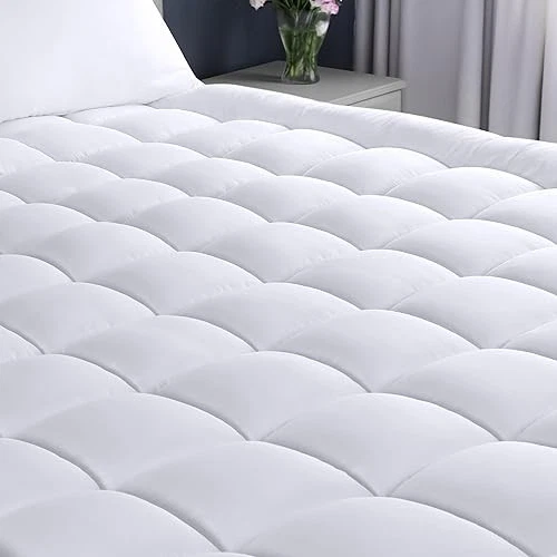 Pillow Top Mattress Topper: California King size mattress topper measures 72 inches by 84 inches with a 16-inch skirt which provides more cushion and support to your mattress and completely changes the firmness level by adding more softness. Please protect the cover from spills as it is not Waterproof. Fluffy & Soft Mattress Pad: The super-soft comfortable top layer of the mattress pad provides extra resilience and gives you a cozy & most relaxing sleep. Laying a pillow top on an existing mattress provides the feeling like sleeping on a cloud. Quilted Fitted Mattress Cover: This box-stitched quilted fitted pattern mattress cover adds an exquisite look and feel to your mattress, while the box stitched design prevents the filling to shift. Mattress Protector With Deep Pocket: The 360° elastic fitted deep fabric pocket can be easily stretched to fit mattresses up to 16 inches to hold tight on all mattress types providing the full protection. Care Instructions: This mattress cover is machine washable under a gentle cycle, and should be tumble dry with no heat. Please do not iron or bleach.