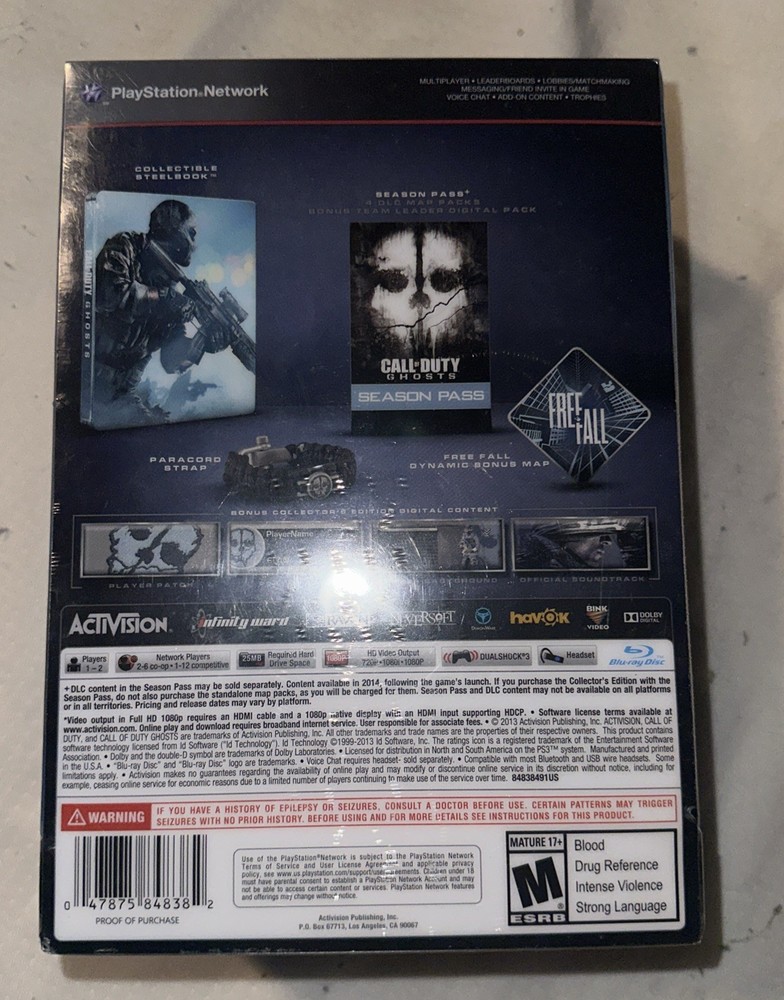 The product is the Call of Duty: Ghosts Hardened Steelbook Collectors Edition for the Sony PlayStation 3. Released in 2013, this special edition includes online playability and comes in a SteelBook case, making it a coveted addition for collectors. The game, published by Activision Classics, is part of the popular Call of Duty series and is rated M for its shooter gameplay. With one disc included, this edition is a must-have for fans of the franchise looking for a unique and valuable gaming experience.