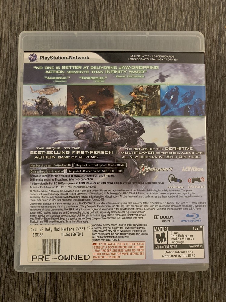 Call of Duty: Modern Warfare 2 (PlayStation 3, 2009). 5-2-22 12-31-22